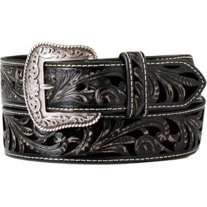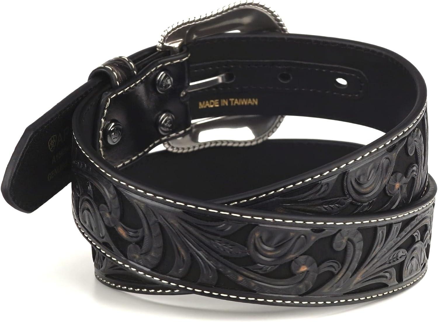 ARIAT Men’s Leather Floral Embossed Belt(Black)