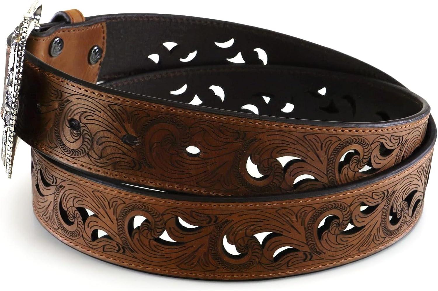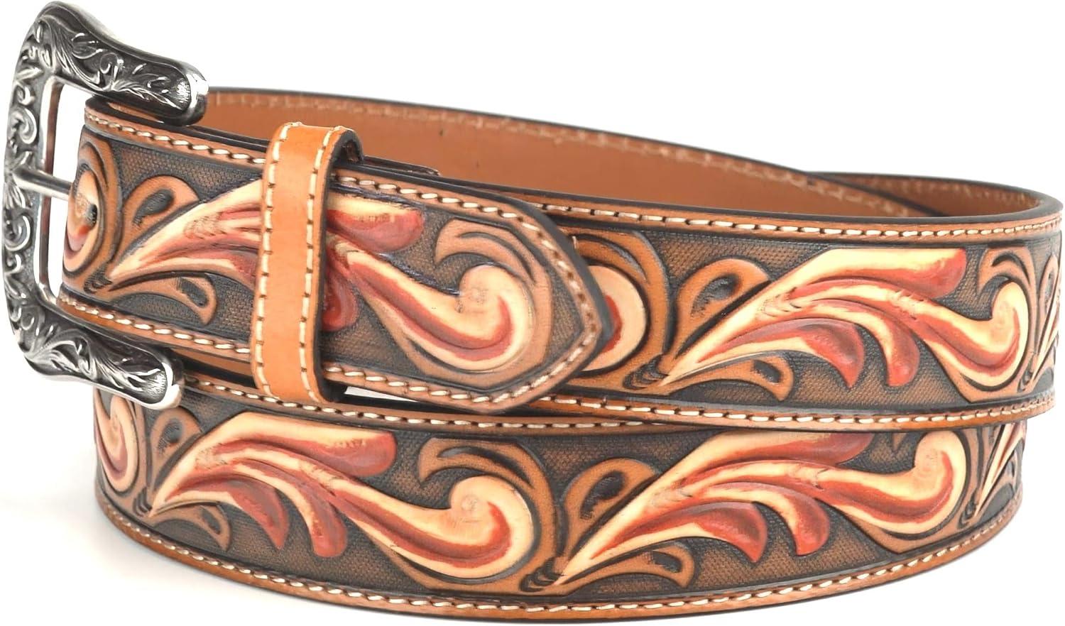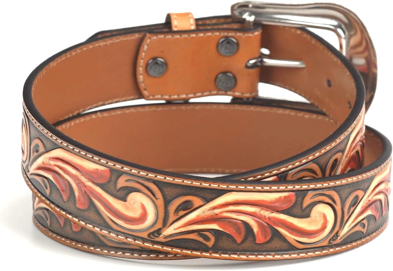 ARIAT Men’s Floral Embossed Two-Tone Leather Western Belt(Tan)