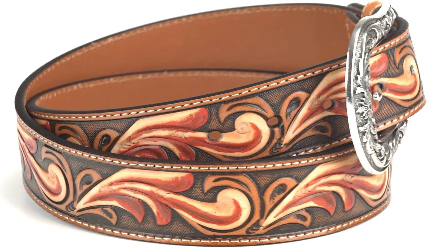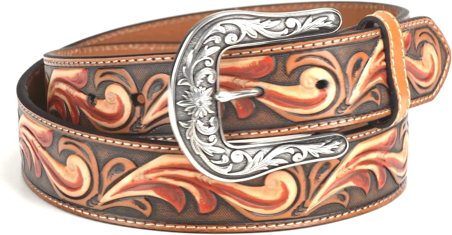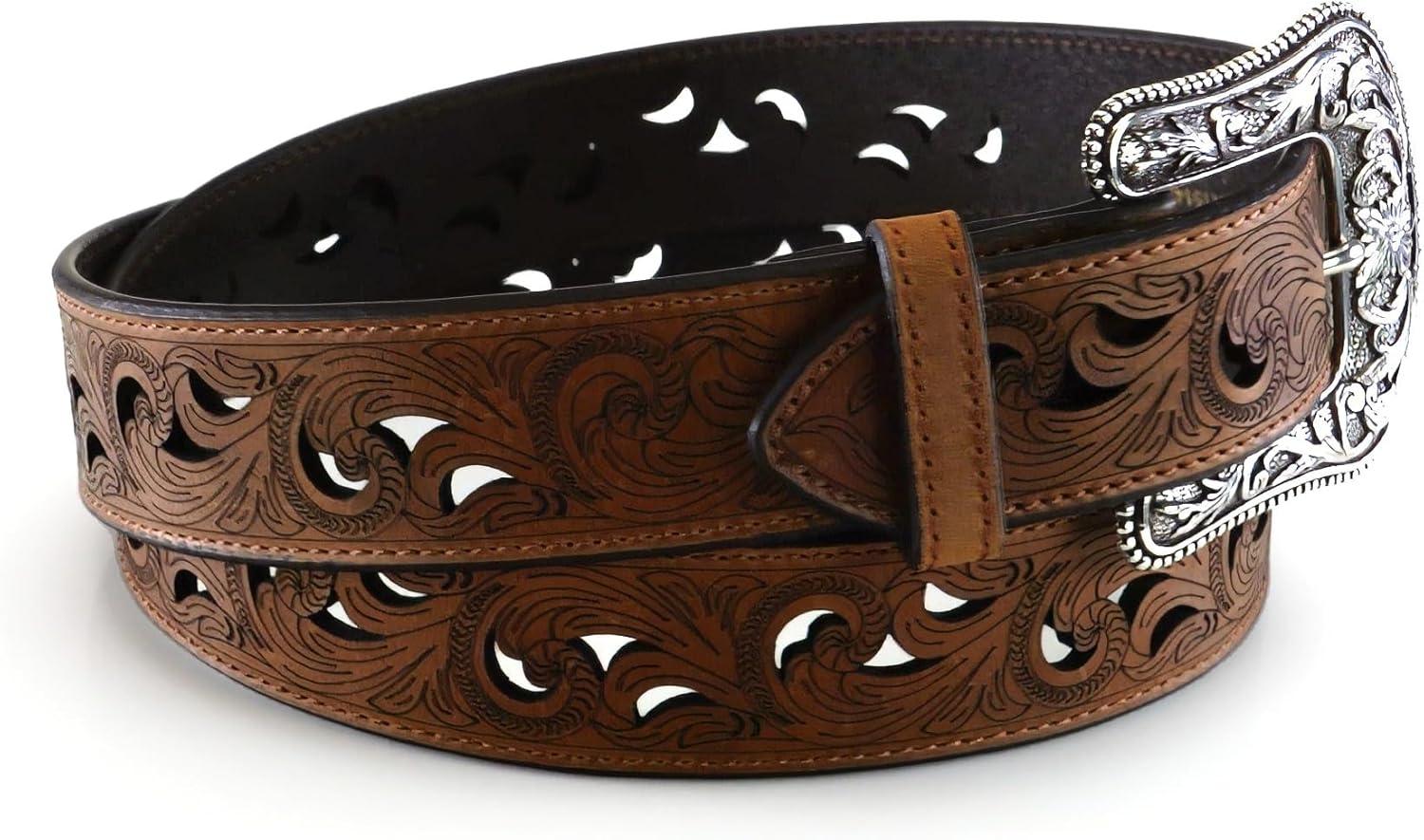 ARIAT Men’s Embossed Leaf Leather Belt with Etched Silver Buckle(Brown)