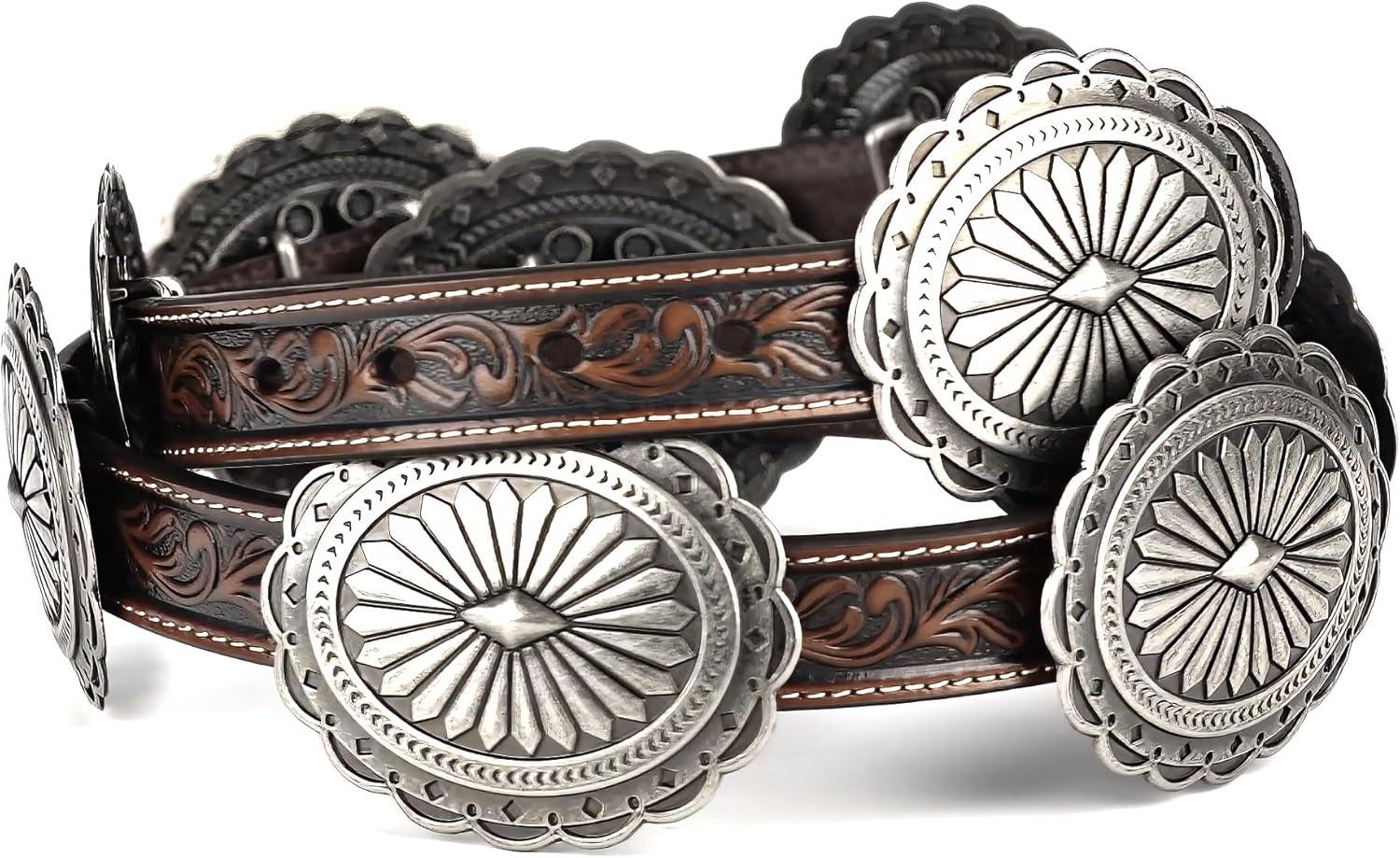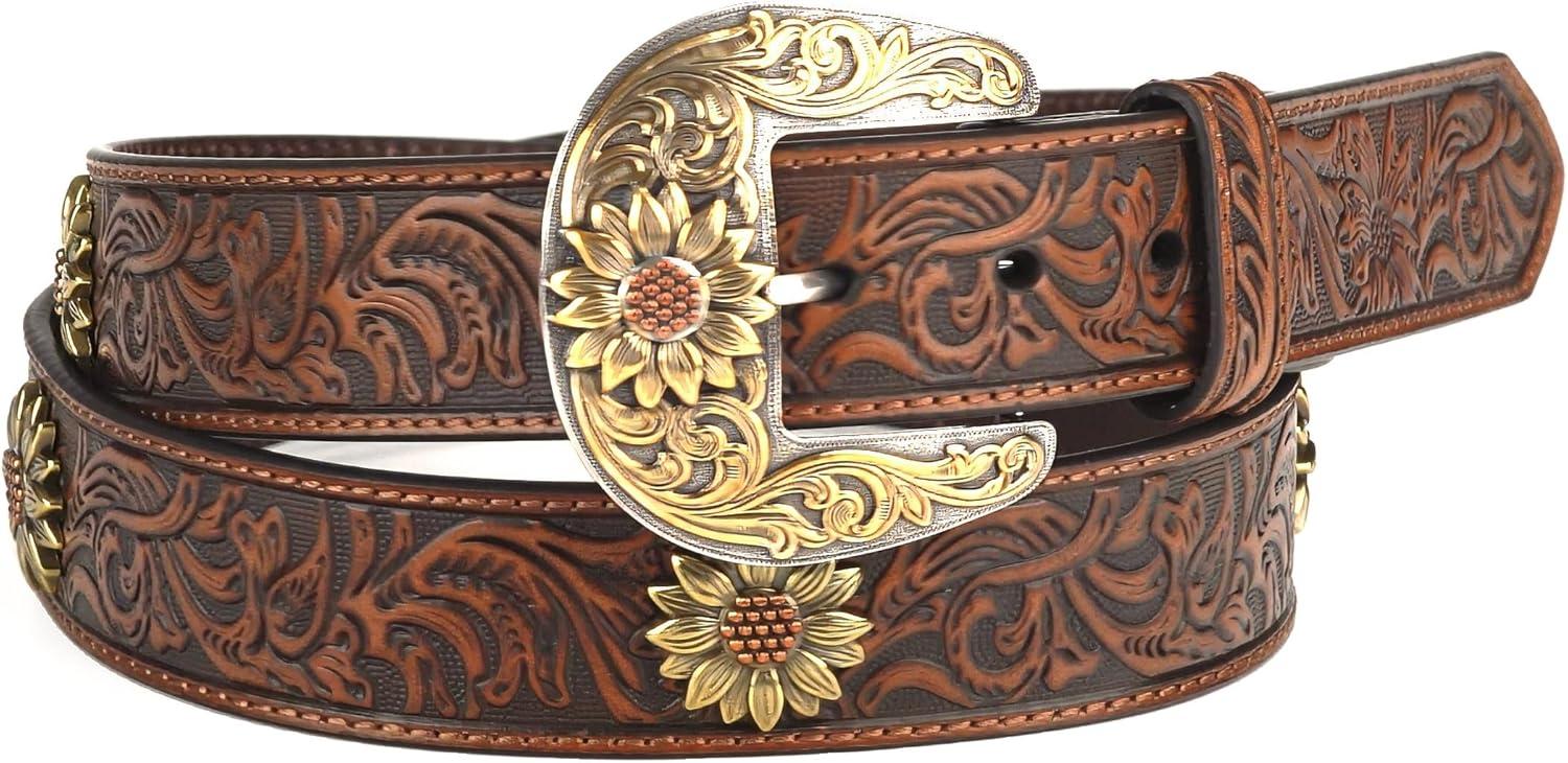 ARIAT Women’s Floral Tooled Sunflower Concho Belt(Brown)