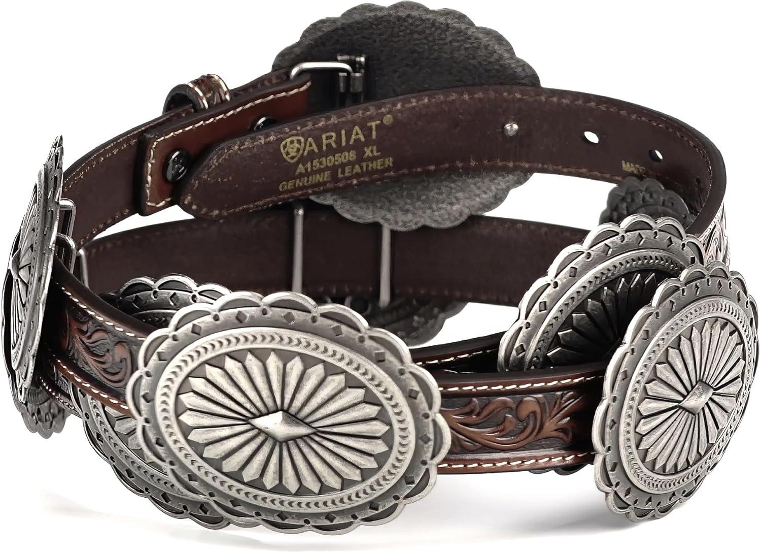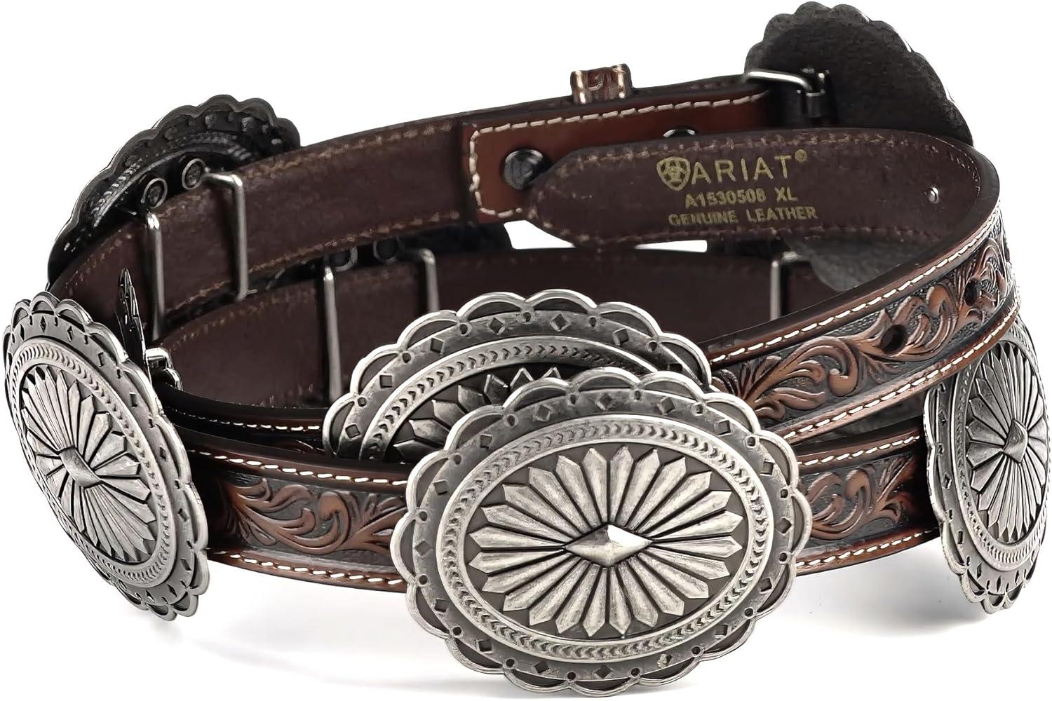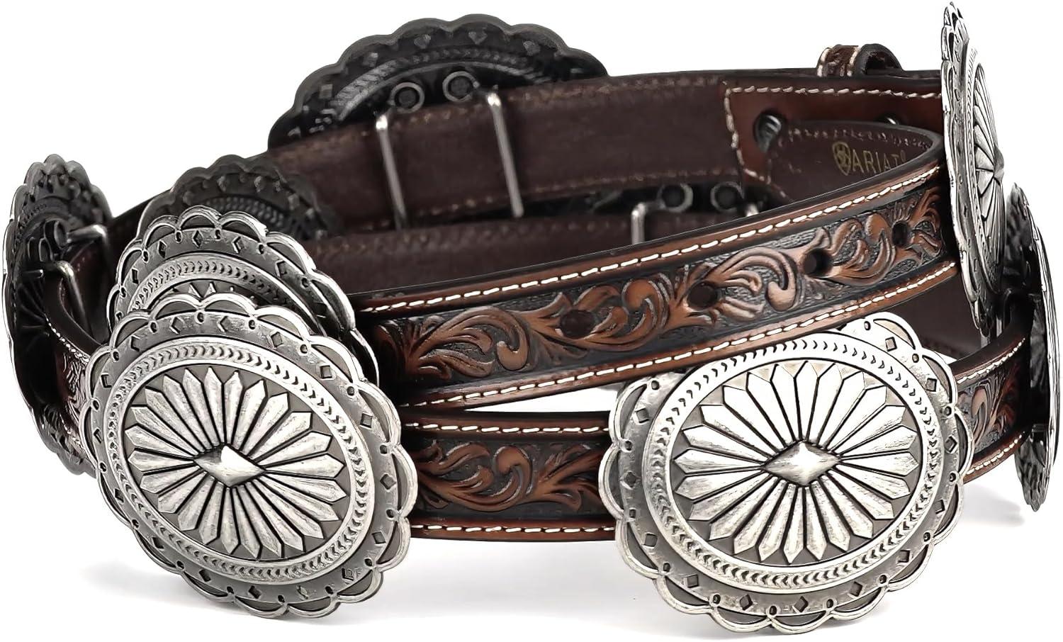 Ariat Women’s Brown Tooled with Silver Oval Concho Leather Belt(Brown)