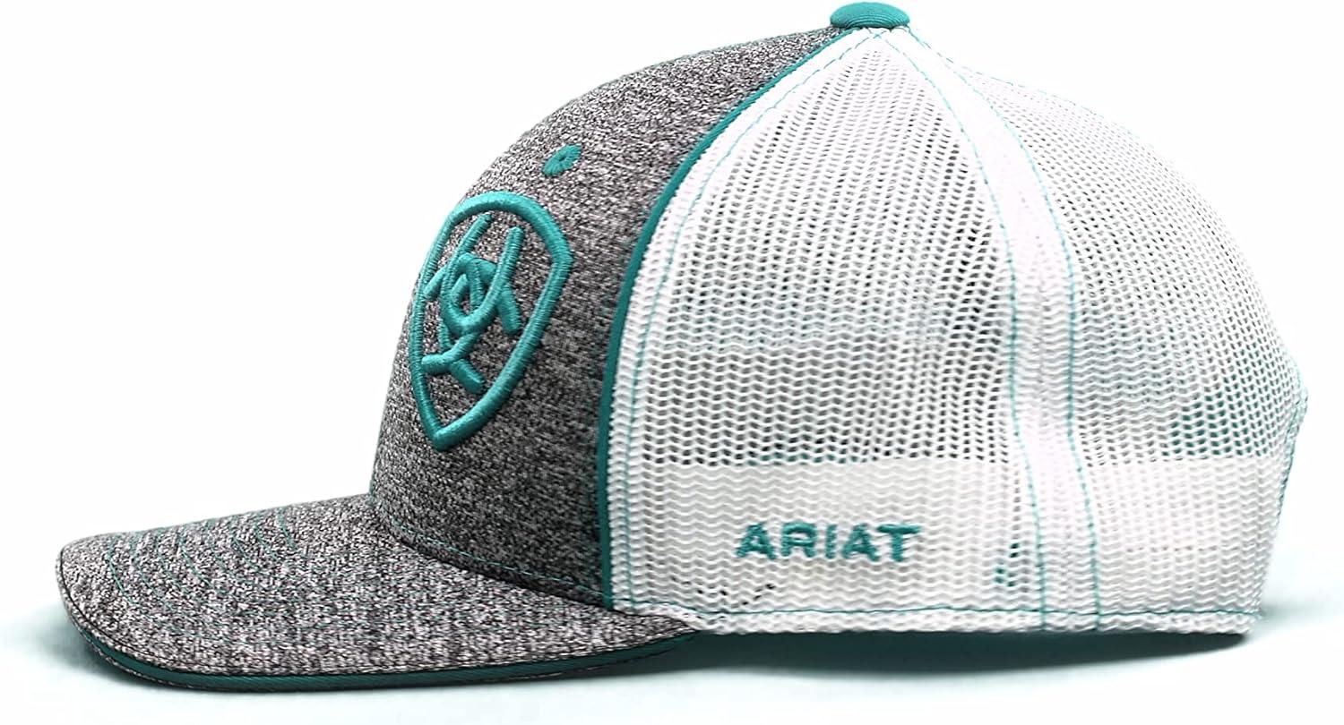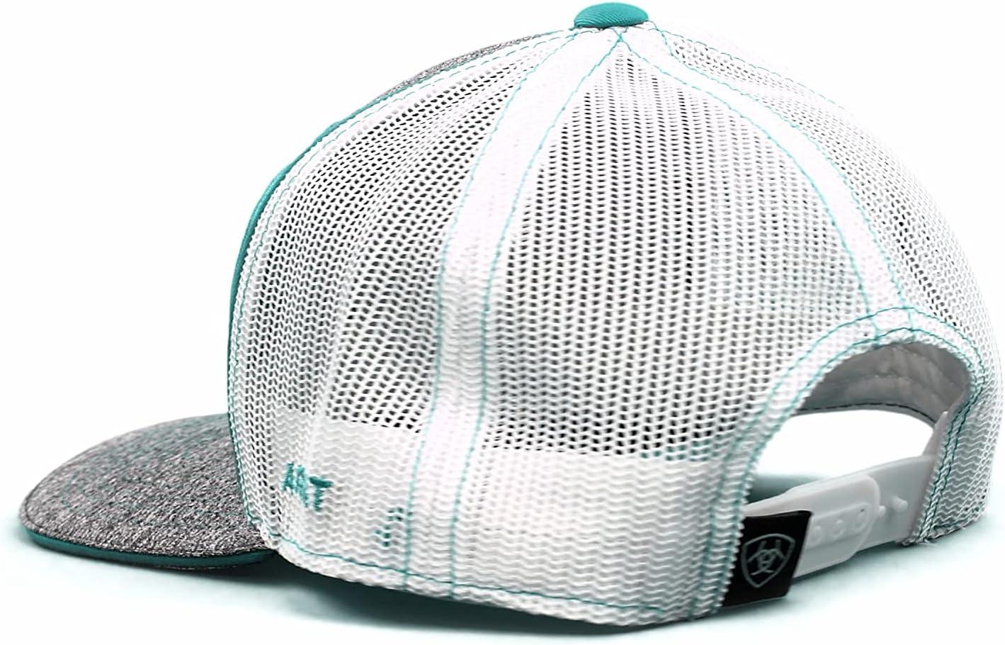 Ariat Men’s Cap, Heather Grey, Turquoise Logo, White Mesh, Flex Fit 110, Adjustable Snapback
