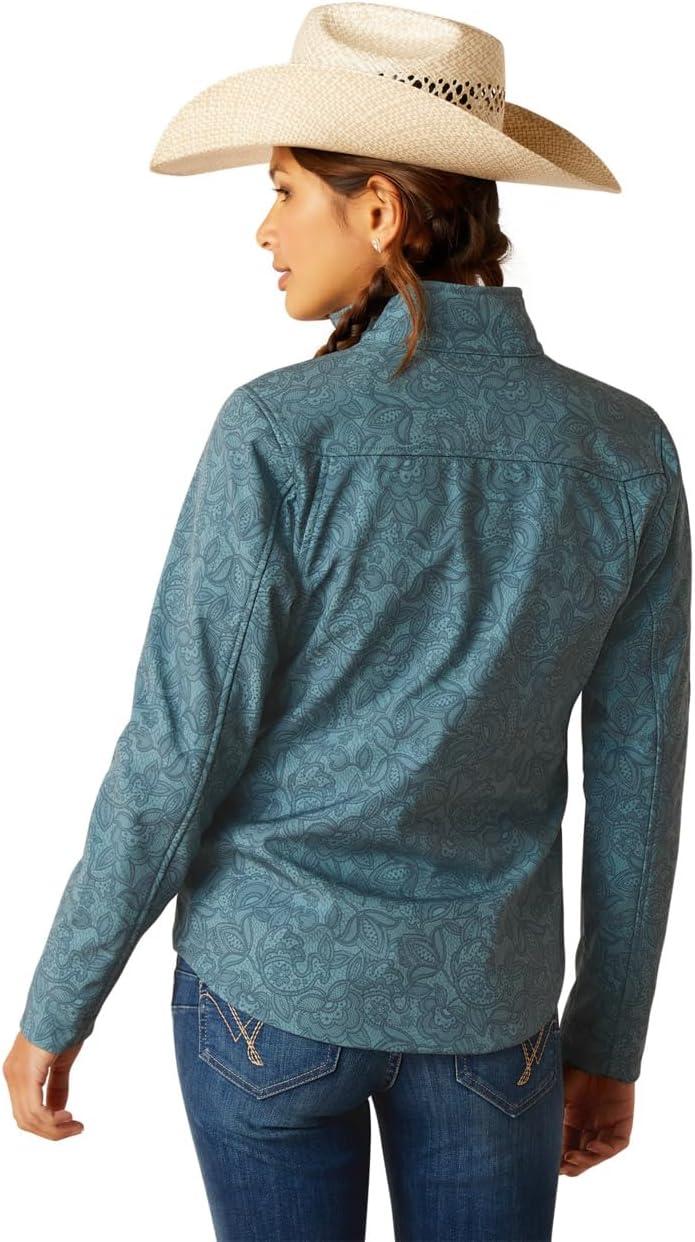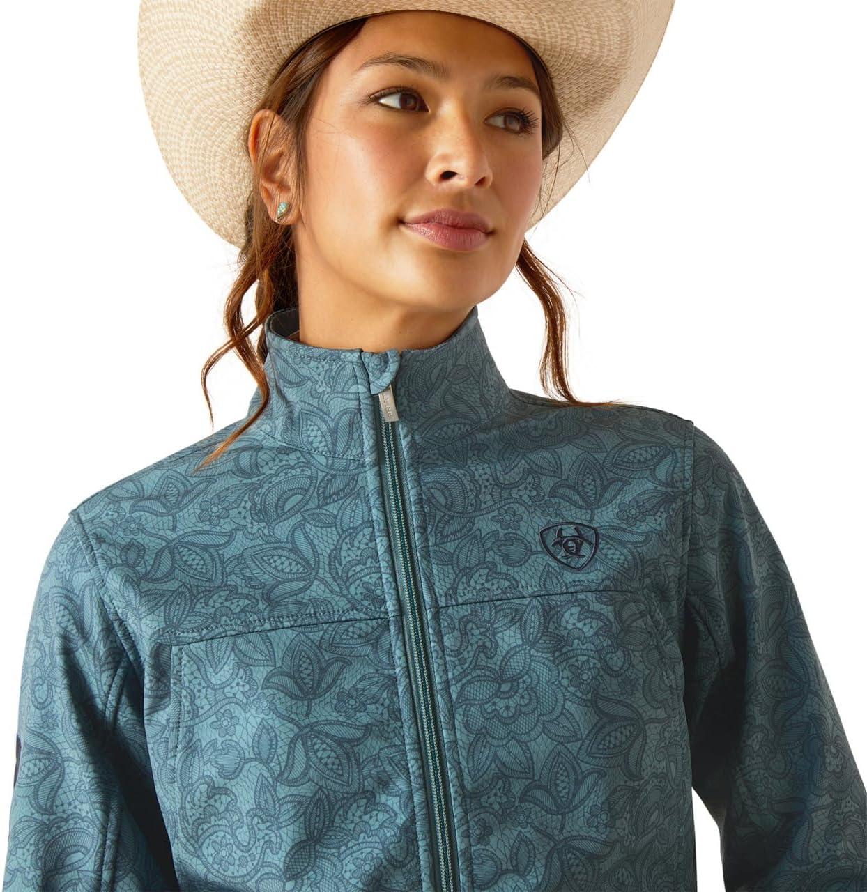 ARIAT New Team Softshell Jacket – Women’s Wind and Water Resistant Jacket(Ocean Depths/Retro Ranch Print)