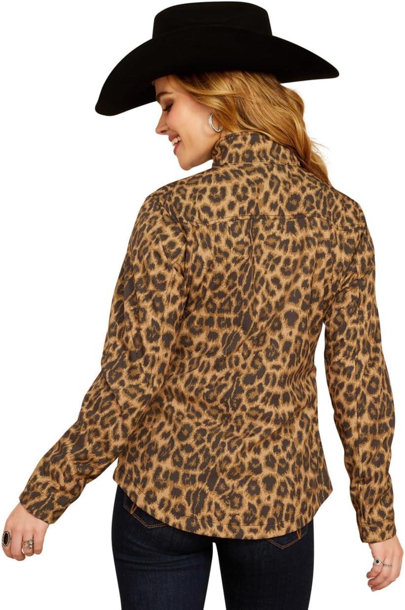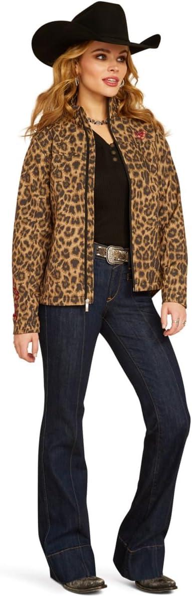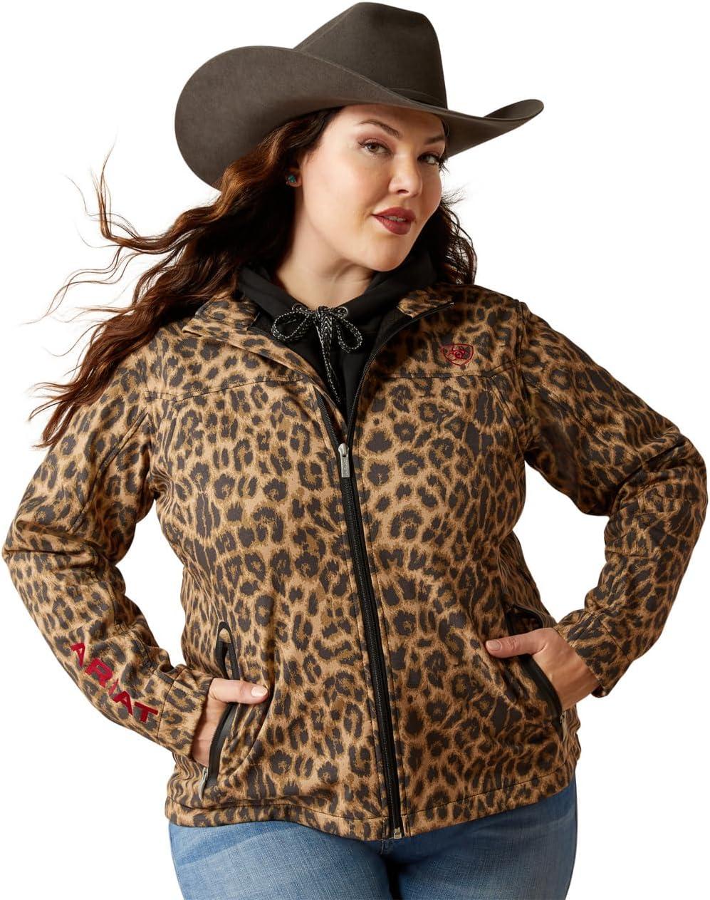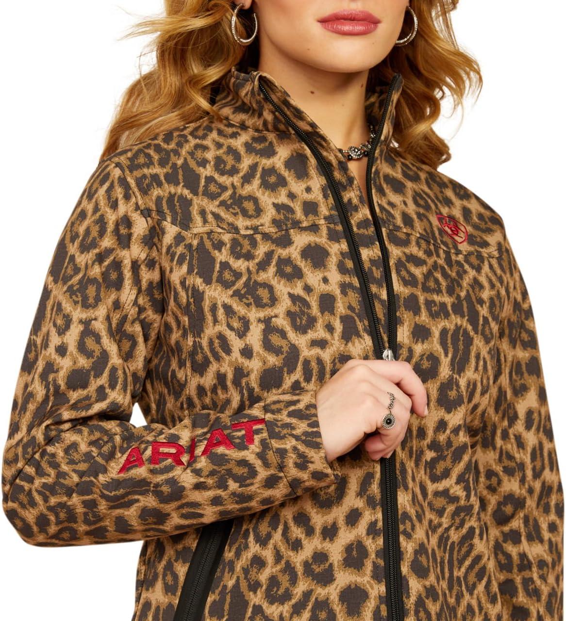 ARIAT New Team Softshell Jacket – Women’s Wind and Water Resistant Jacket(Black/Leopard)