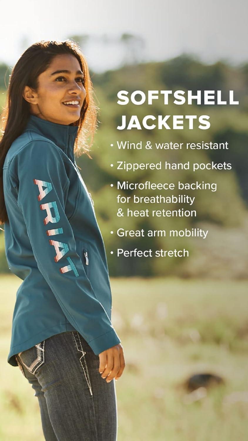 ARIAT New Team Softshell Jacket – Women’s Wind and Water Resistant Jacket(Wild West Usa)