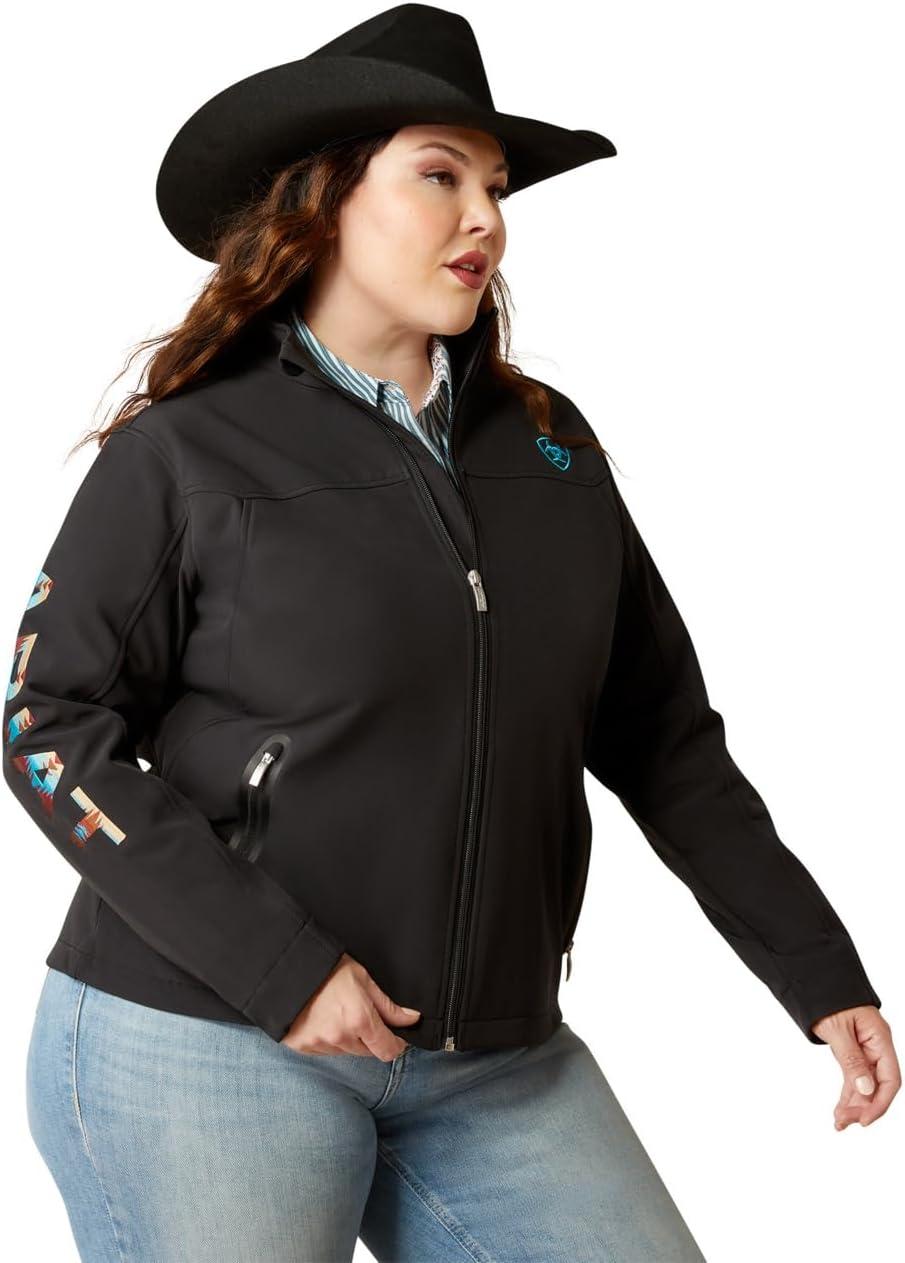 ARIAT New Team Softshell Jacket – Women’s Wind and Water Resistant Jacket(Black/Serrano Southwest Print)