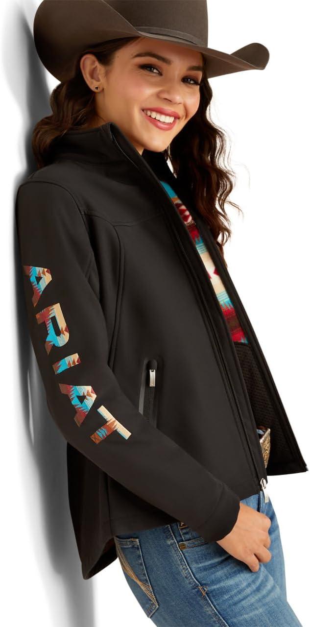 ARIAT Women’s New Team Softshell Jacket, Black(Black/Serrano Southwest Print)