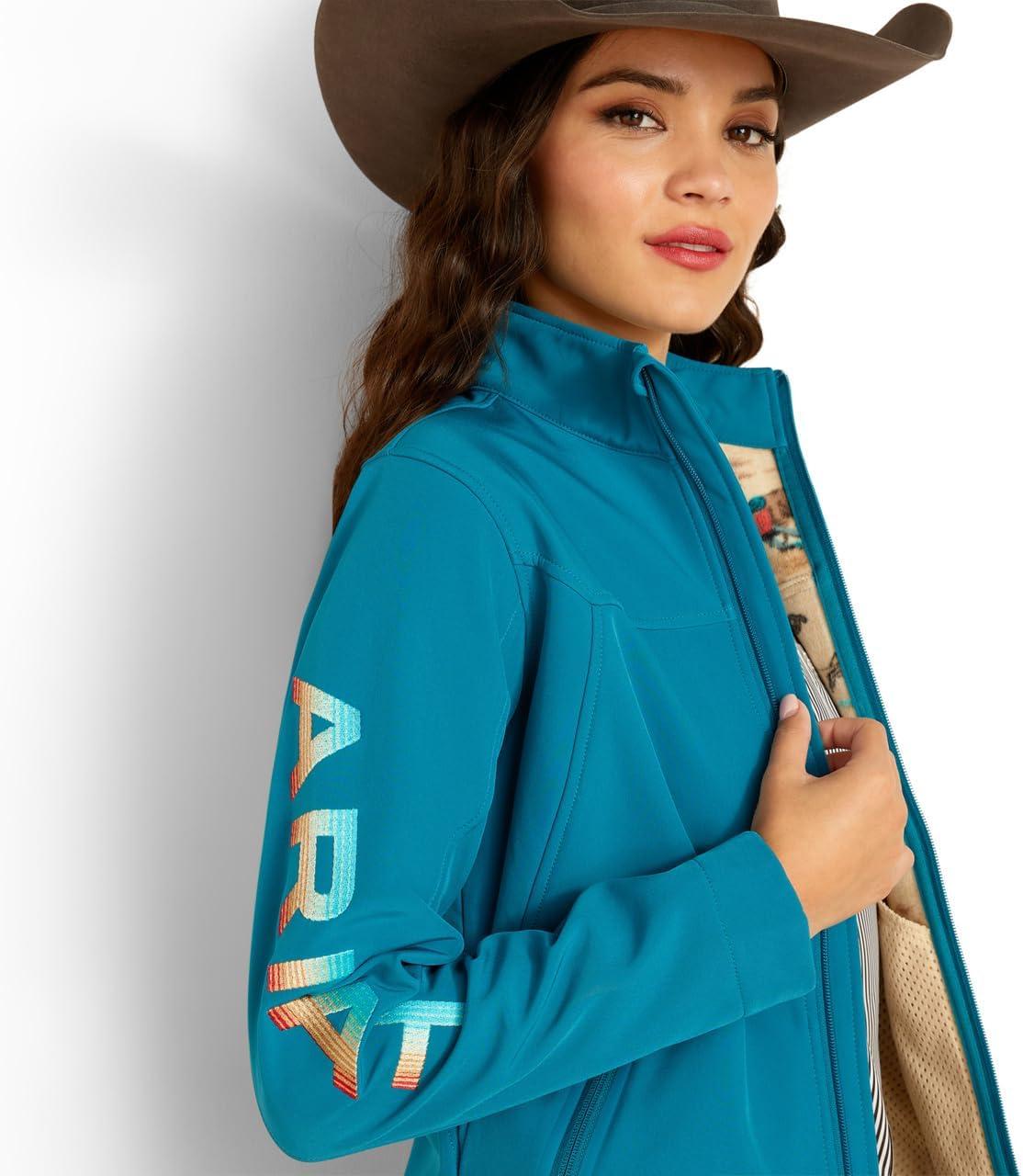 ARIAT Womens Classic Team Softshell Brand Jacket(Eurasian Teal Serape)