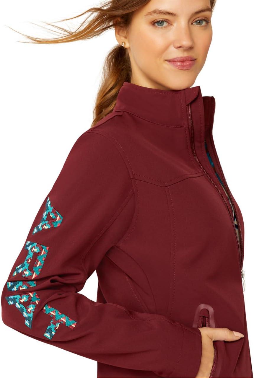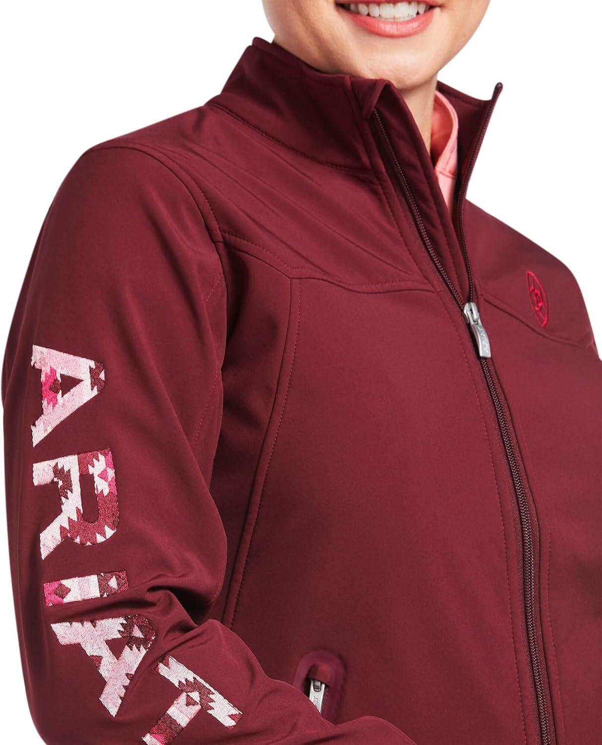 ARIAT New Team Softshell Jacket – Women’s Wind and Water Resistant Jacket(Zinfandel/Carmen Geo)