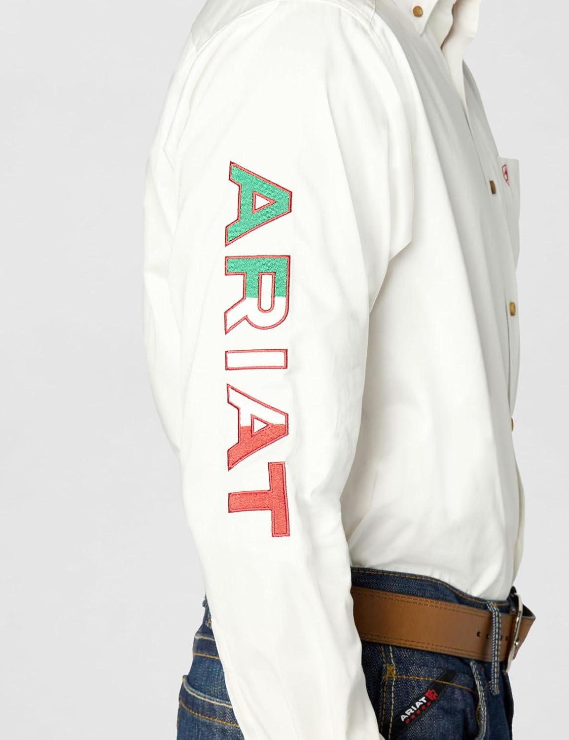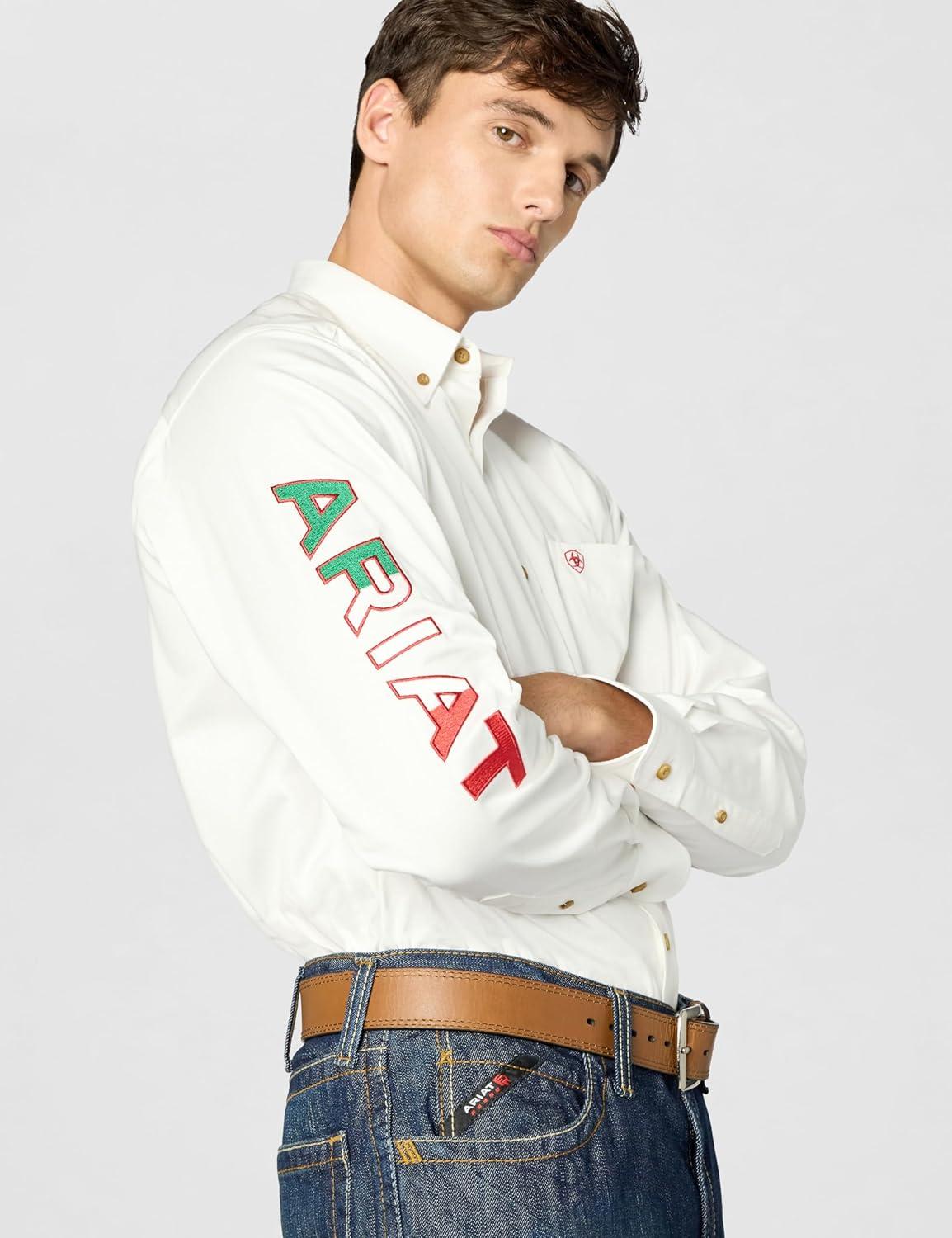 ARIAT Male Team Logo Twill Classic Fit Shirt Sea Scape USA 3X-Large(White Mexico)