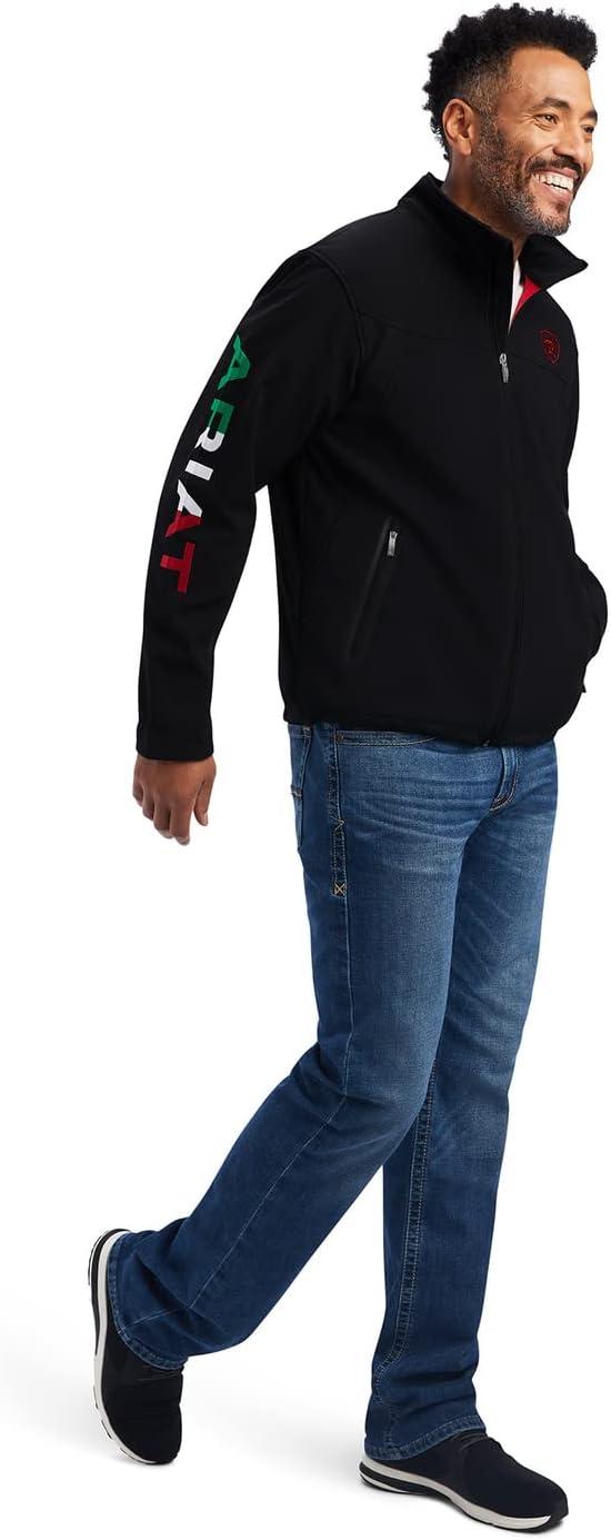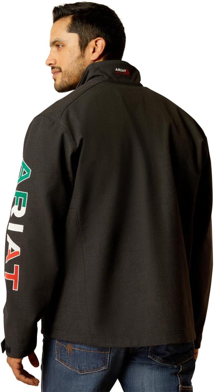 ARIAT Men’s New Team Softshell Mexico Water Resistant Jacket(Black/Mexico)