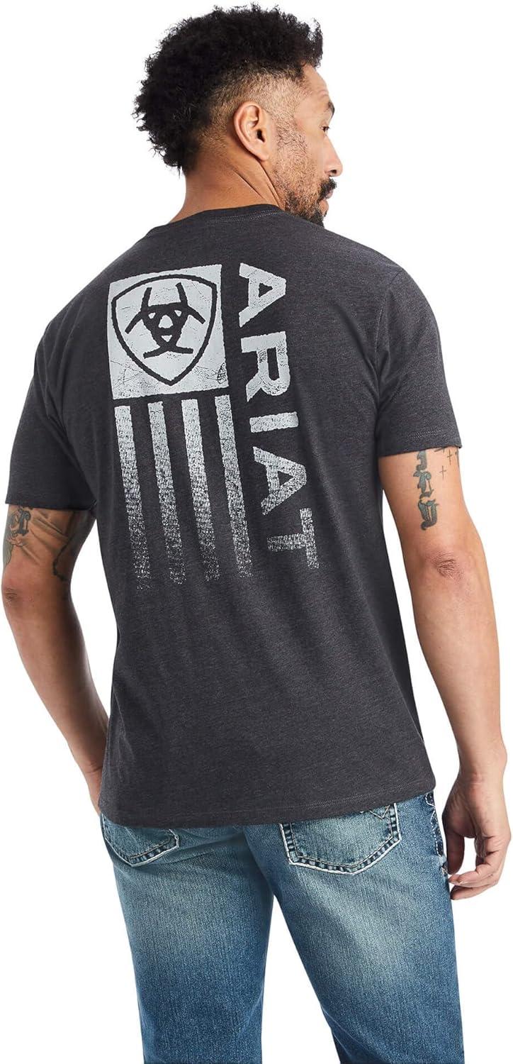 Ariat Men’s Graphic T-Shirt(Charcoal Heather/Vertical Flag)