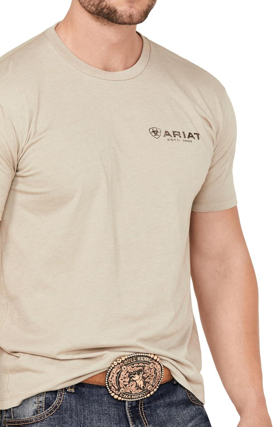 ARIAT Men’s Buckaroo T-Shirt, Buckhorn(Khaki Heather/Hex)