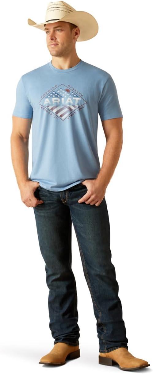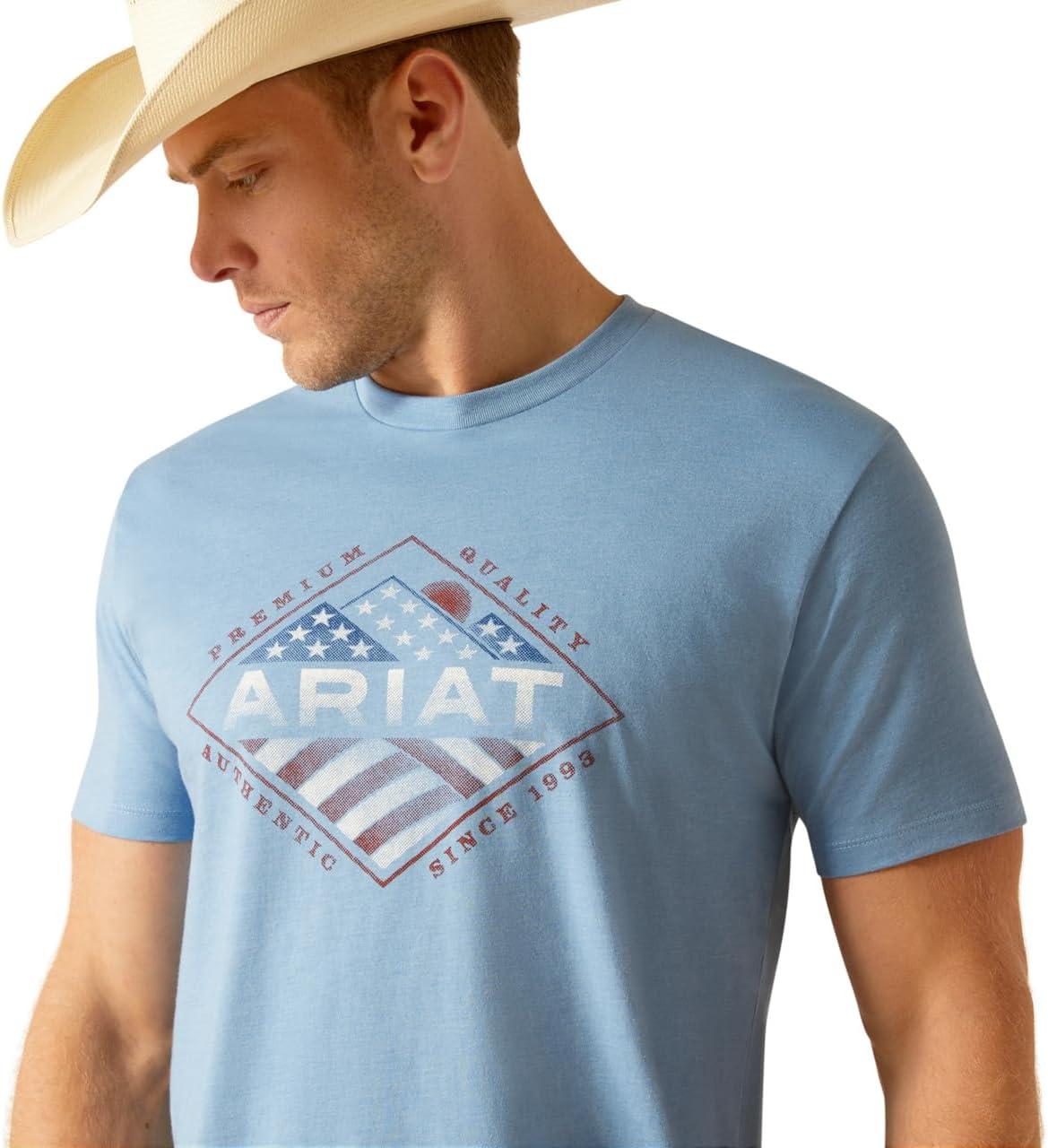Ariat Men’s Graphic T-Shirt(Light Blue Heather/Usa Range)