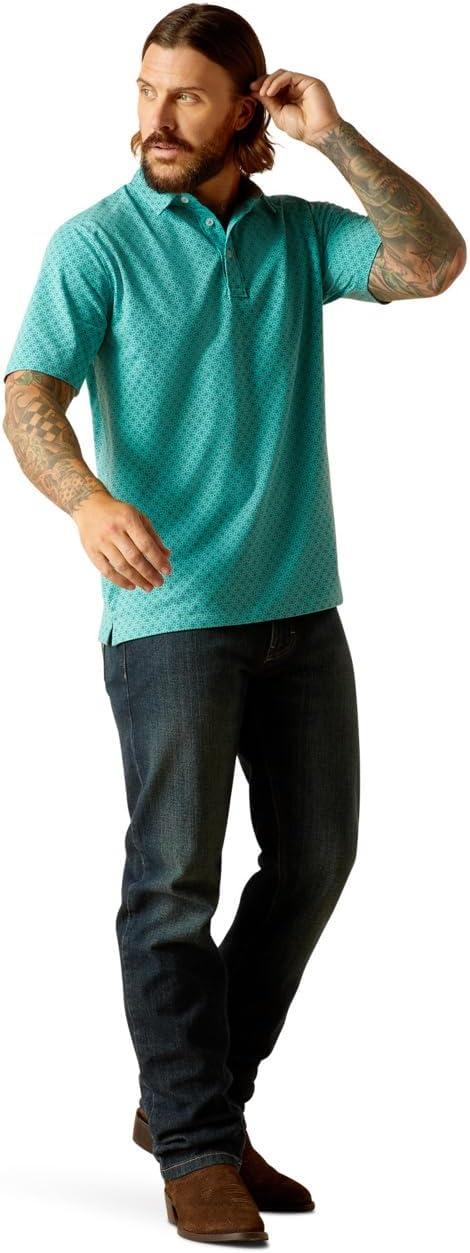 ARIAT Men’s All Over Print Polo(Peacock Blue)