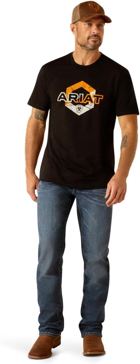 ARIAT Men’s Buckaroo T-Shirt, Buckhorn(Black/Hexstatic)