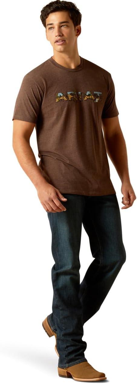 ARIAT Men’s Buckaroo T-Shirt, Buckhorn(Brown Heather/Logo Sw Landscape)
