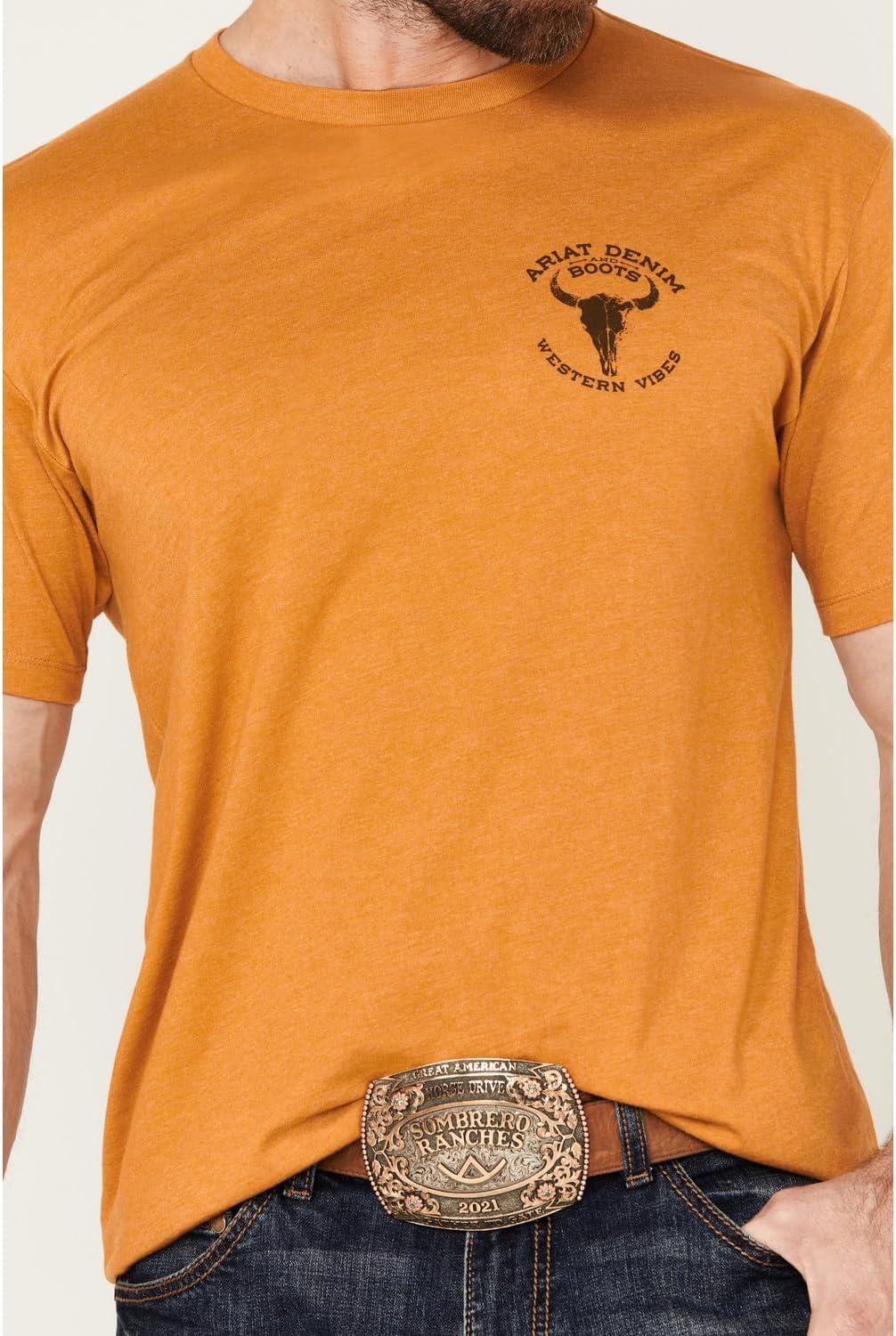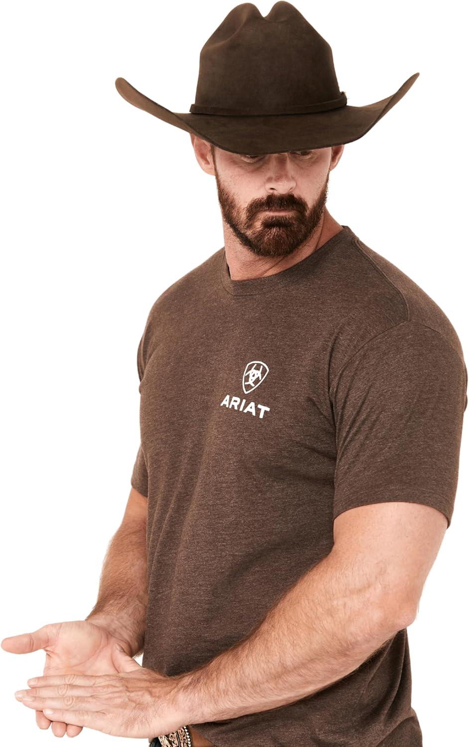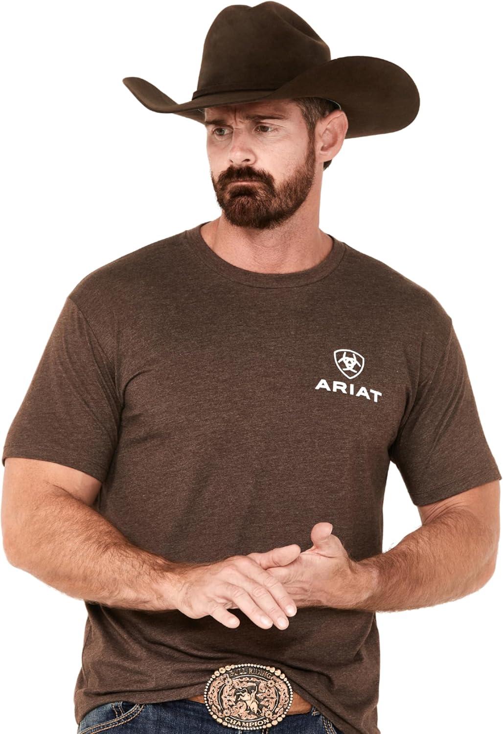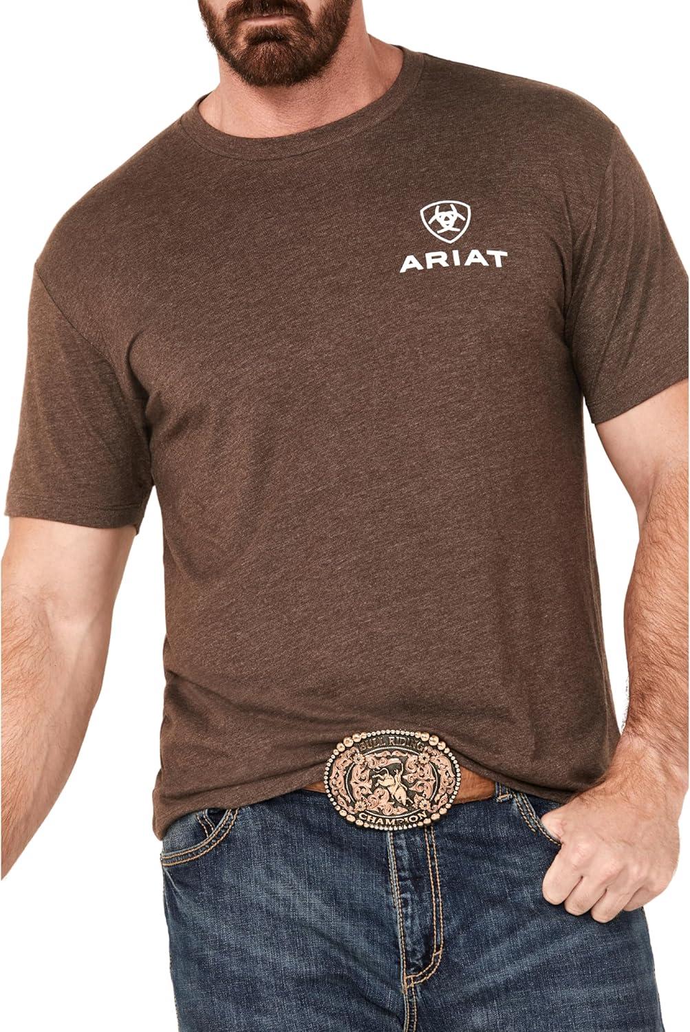 ARIAT Men’s Buckaroo T-Shirt, Buckhorn(Brown Heather/Liberty Usa)