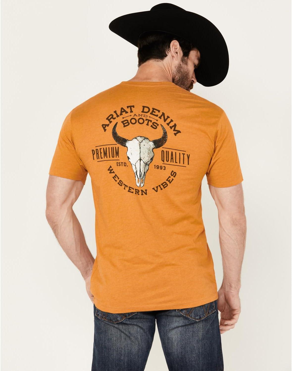 ARIAT Men’s Buckaroo T-Shirt, Buckhorn(Black/Streak Skull)