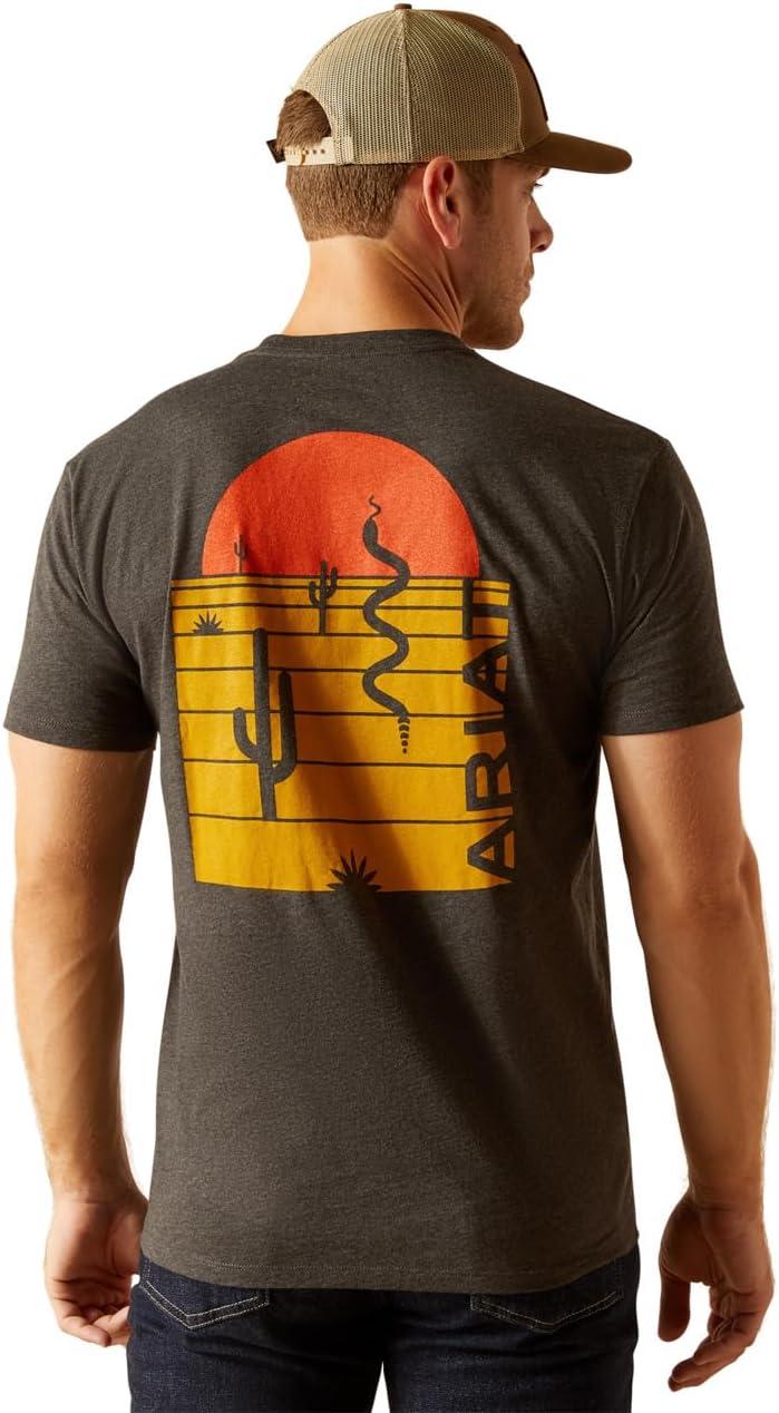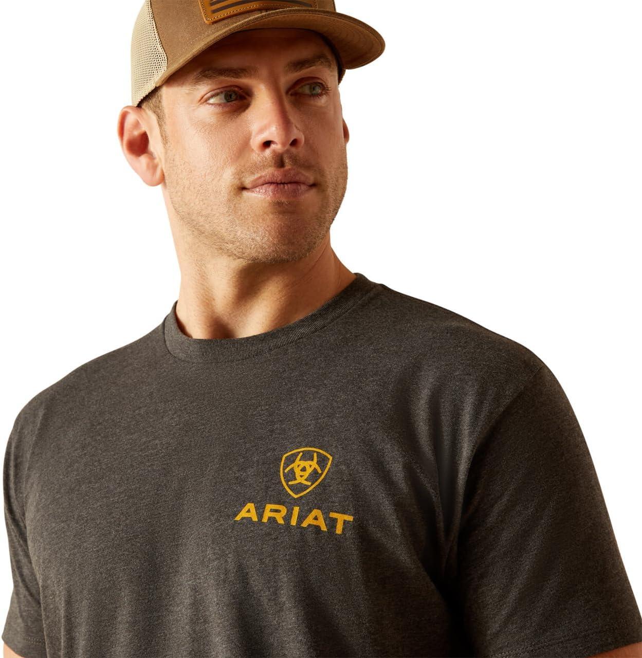 ARIAT Men’s Buckaroo T-Shirt, Buckhorn(Charcoal Heather/Desert Modern)