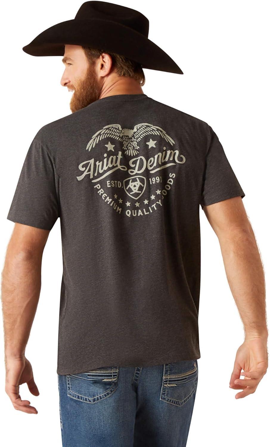 ARIAT Men’s Buckaroo T-Shirt, Buckhorn(Charcoal Heather/Eagle Round)