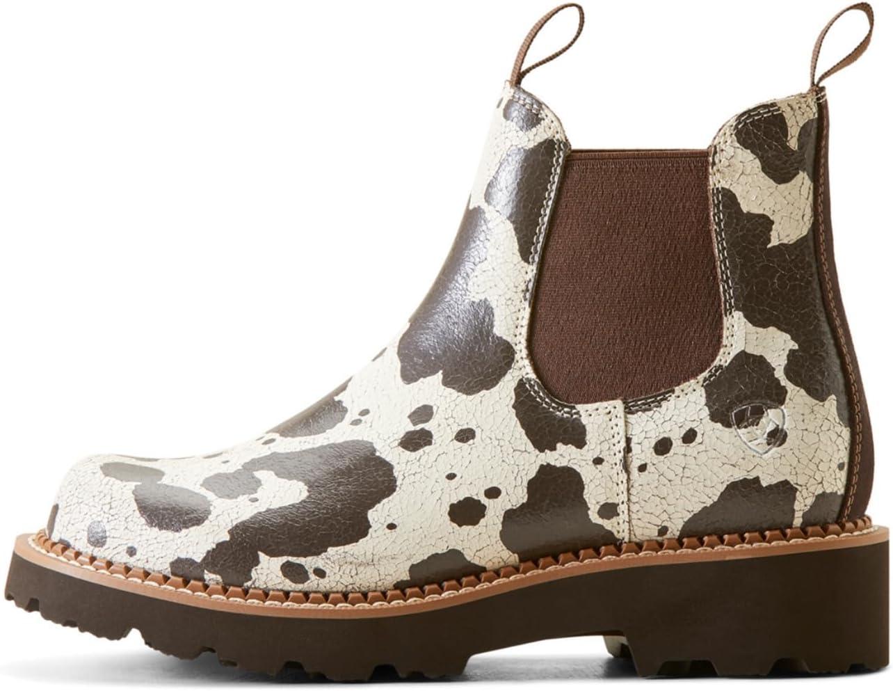 ARIAT Women’s Fatbaby Twin Gore Western Boot(Cow Print)