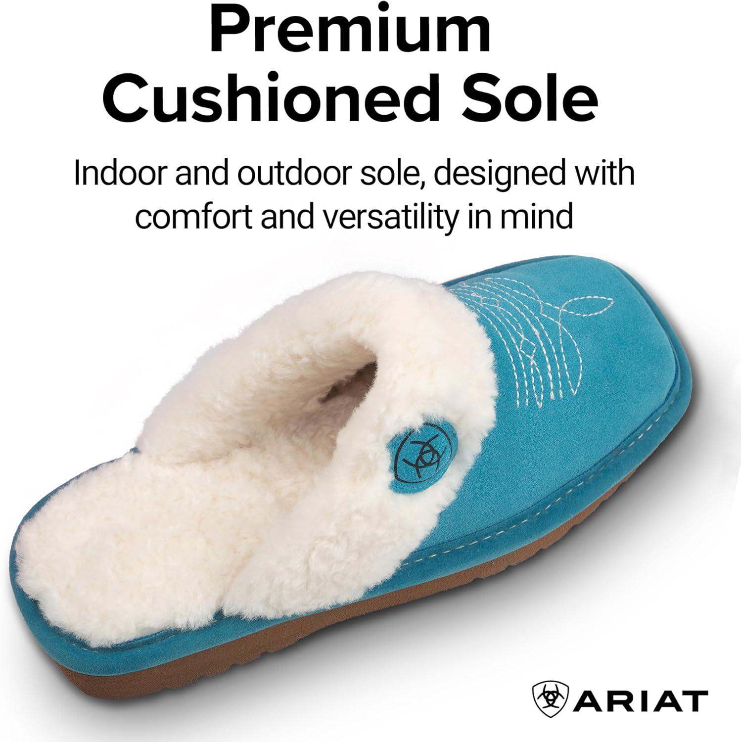 ARIAT Women’s Jackie Square Toe Warm Soft Genuine Suede Leather Indoor Outdoor Slippers with Plush Collar(Bright Turquoise)