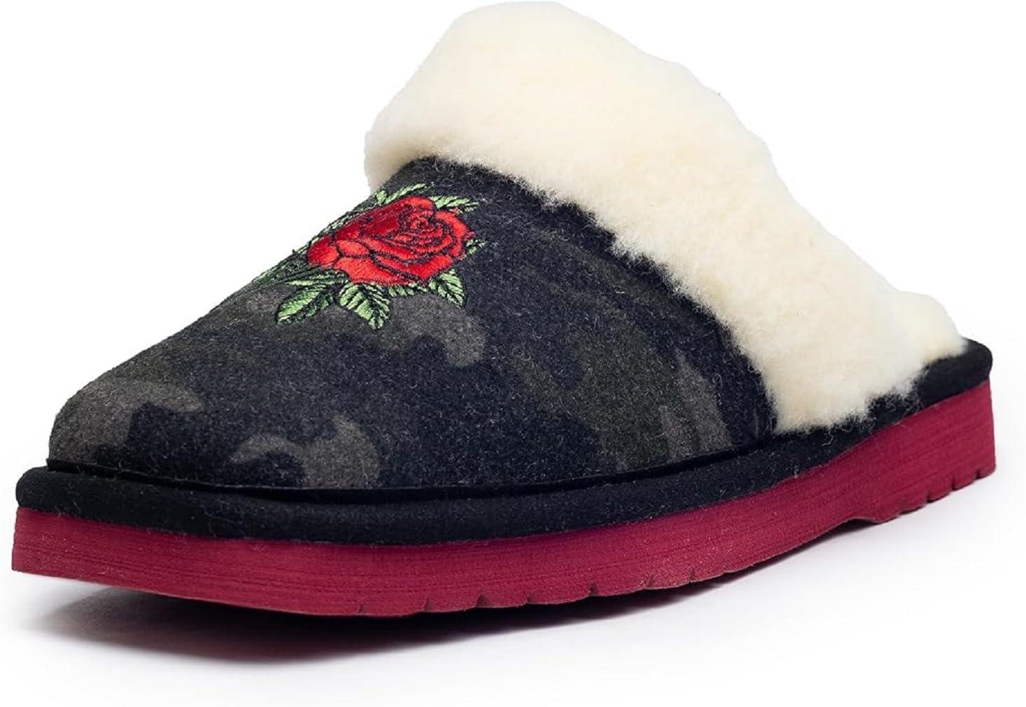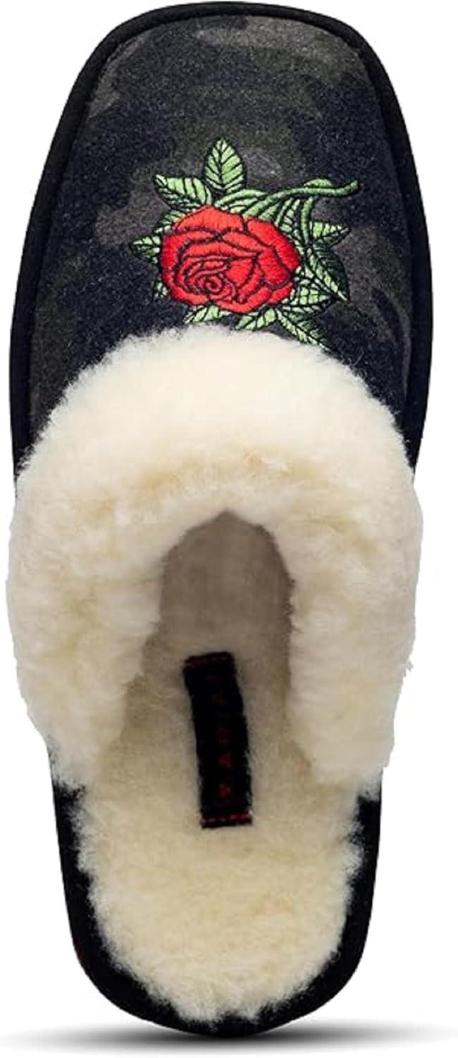 ARIAT Women’s Jackie Square Toe Warm Soft Genuine Suede Leather Indoor Outdoor Slippers with Plush Collar(Camo Rose)