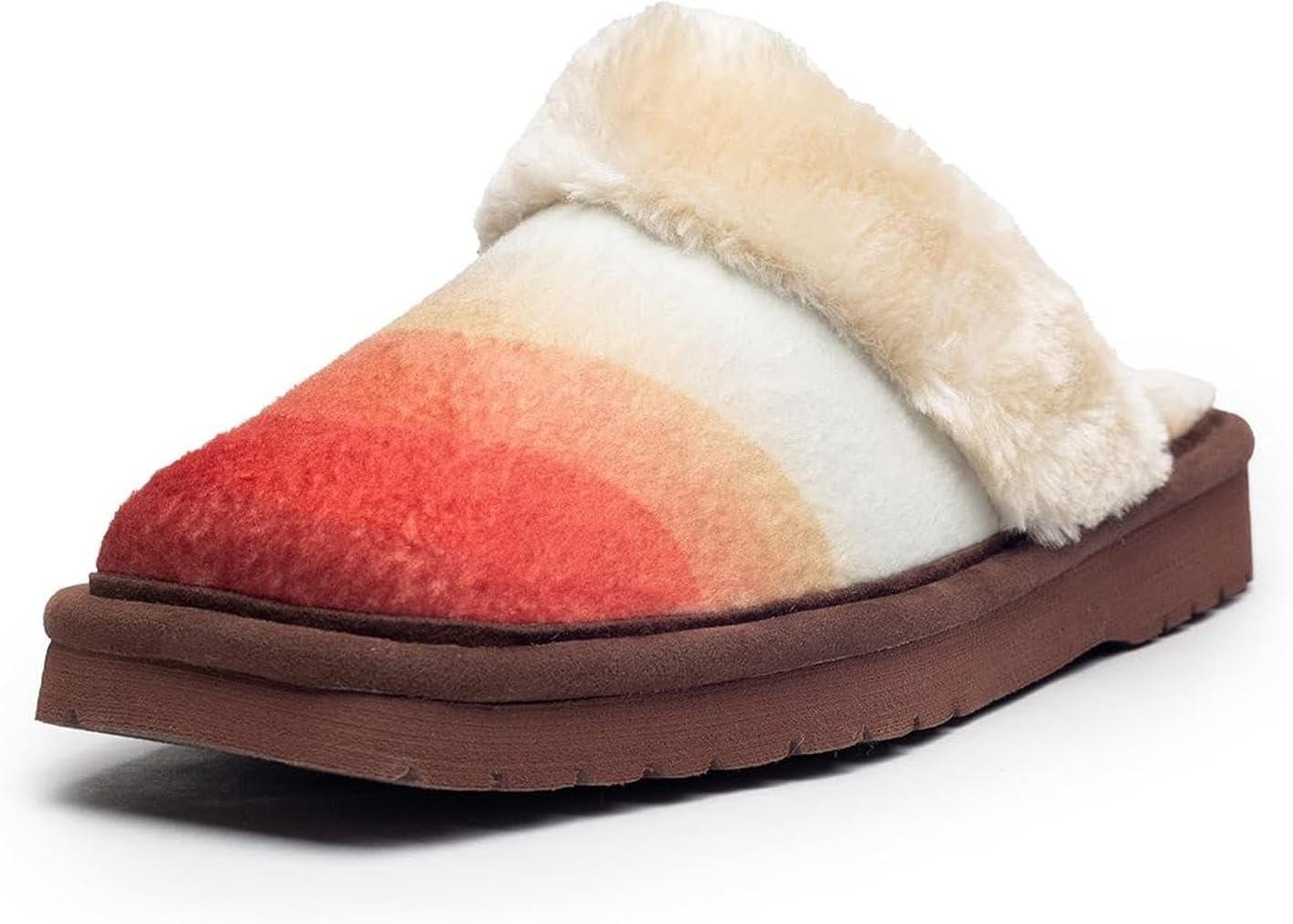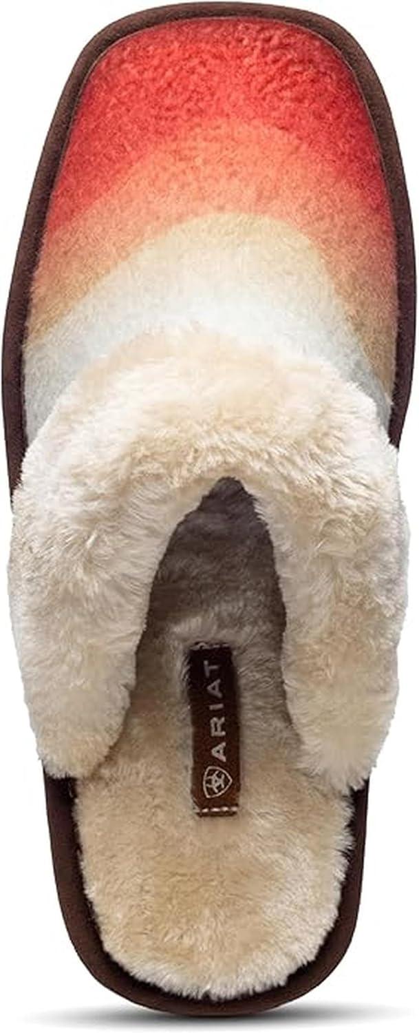 ARIAT Women’s Jackie Square Toe Warm Soft Genuine Suede Leather Indoor Outdoor Slippers with Plush Collar(Sunset)