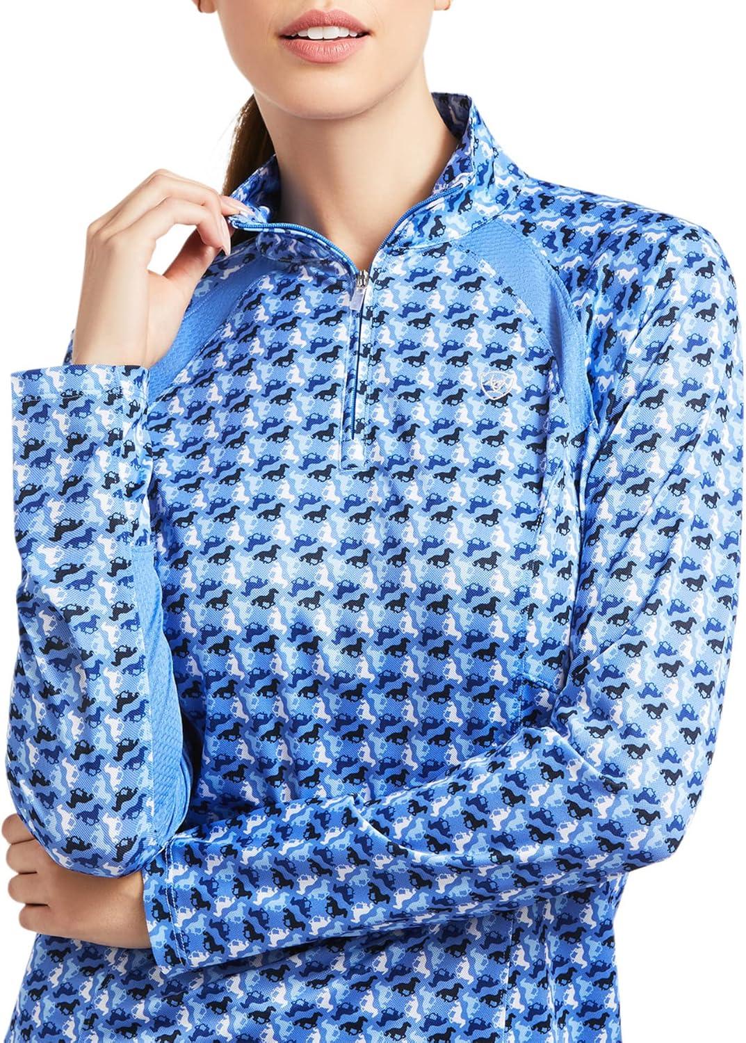 Ariat Women’s Sunstopper 3.0 1/4 Zip Baselayer, North Atlantic Dot, X-Small(Black Busy Pony Print)