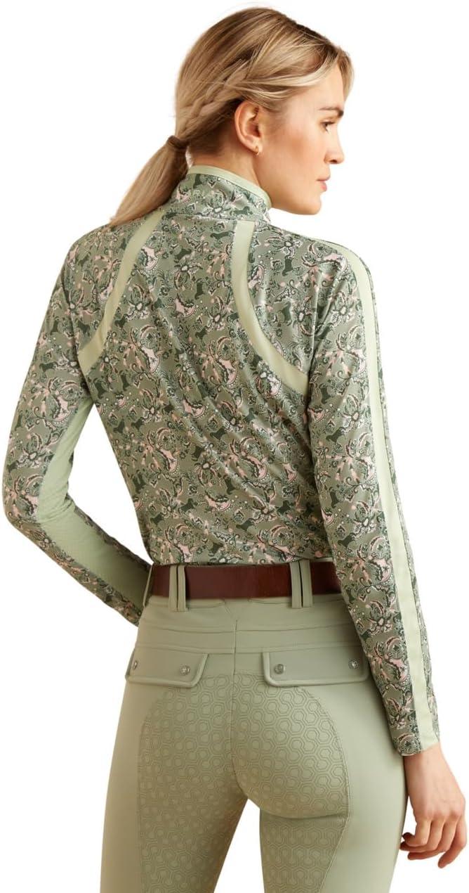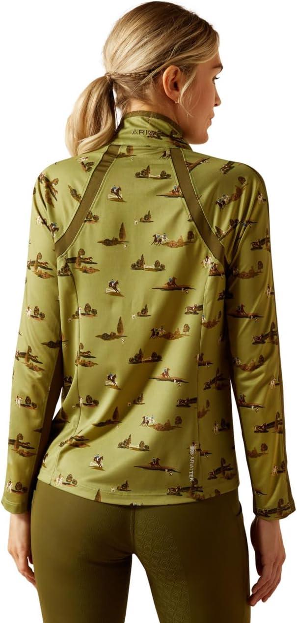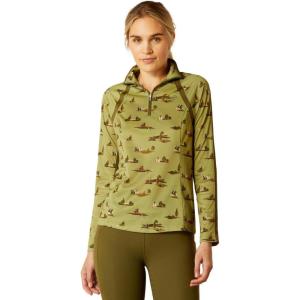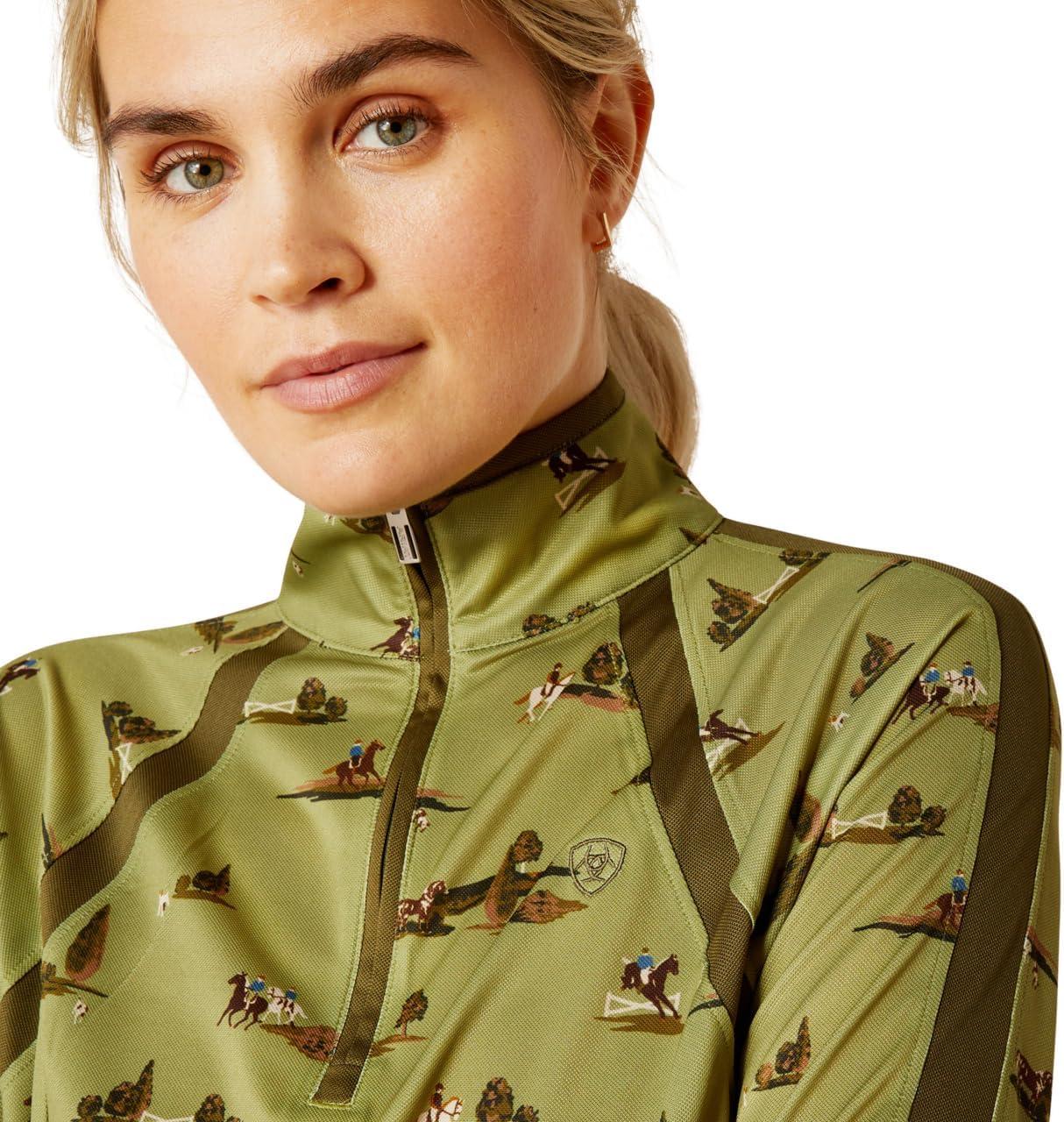 Ariat Women’s Sunstopper 3.0 1/4 Zip Baselayer, North Atlantic Dot, X-Small(Laurel Green)