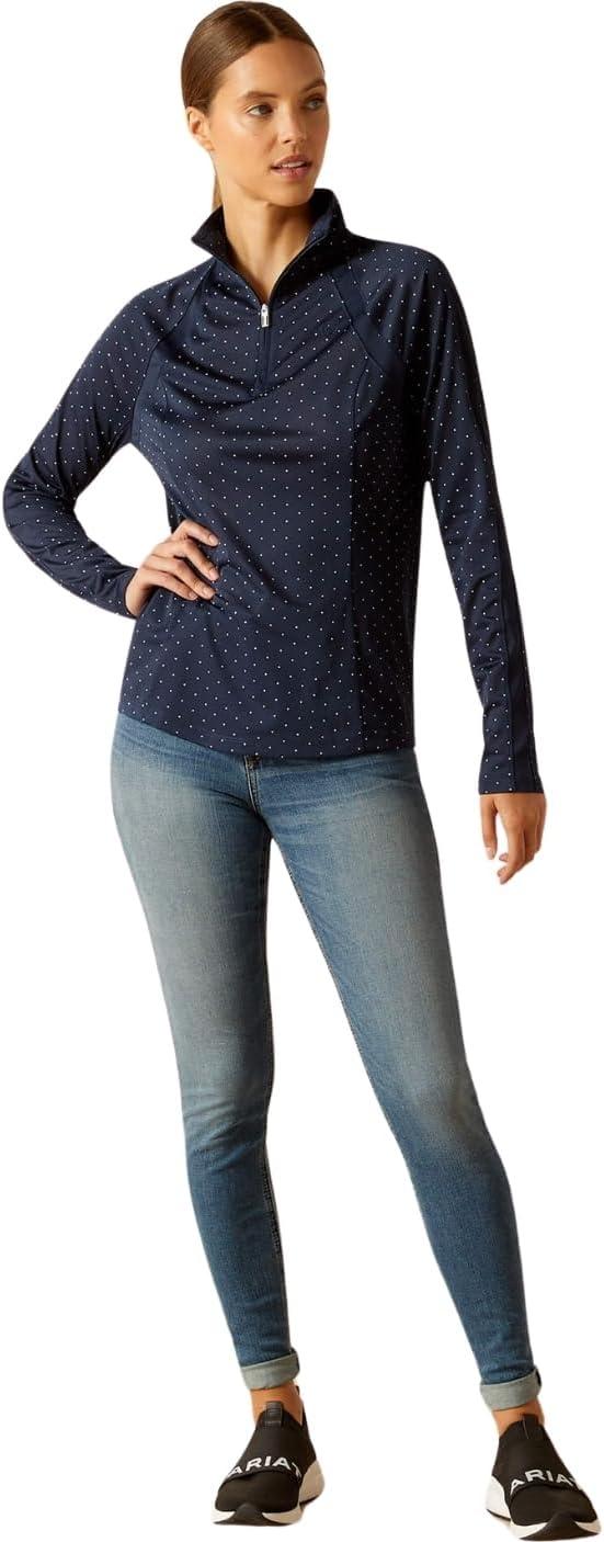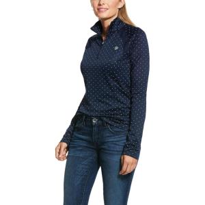 Ariat Women’s Sunstopper 3.0 1/4 Zip Baselayer, North Atlantic Dot, X-Small(Navy__dot)