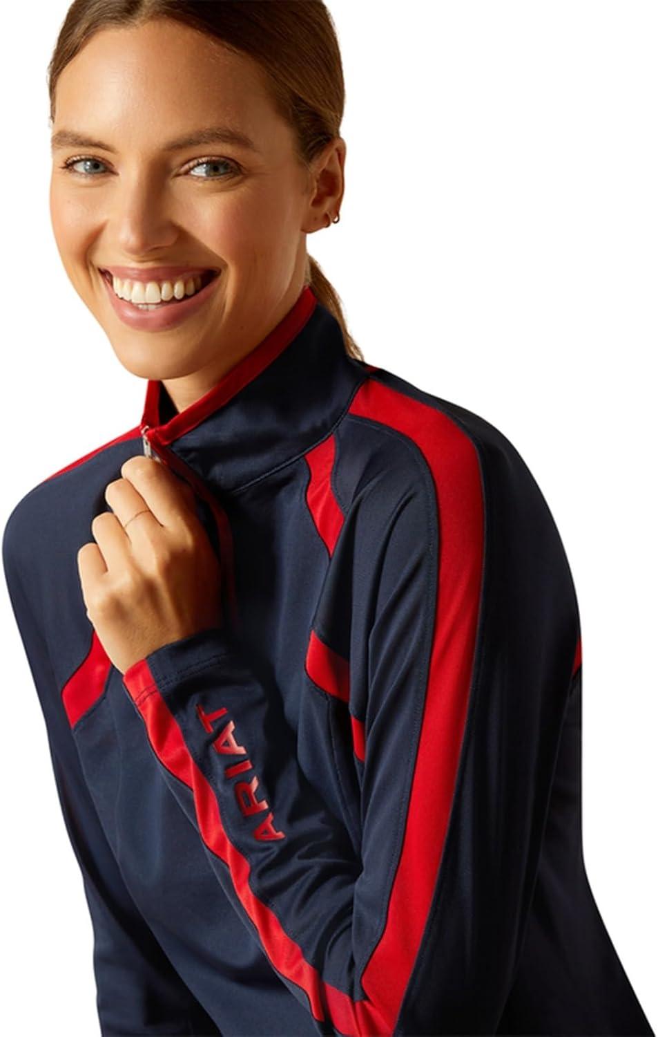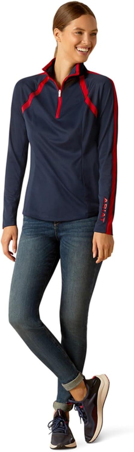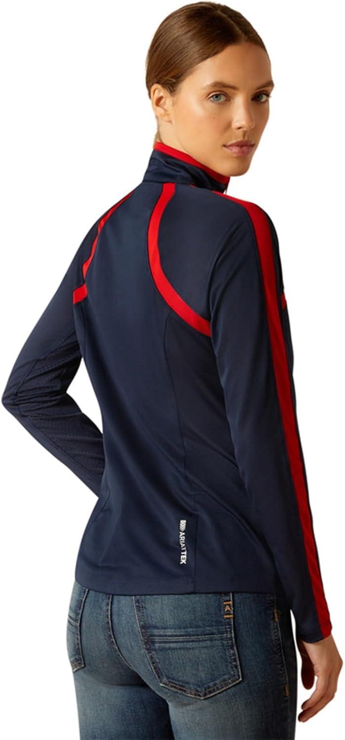 Ariat Women’s Sunstopper 3.0 1/4 Zip Baselayer, North Atlantic Dot, X-Small(Navy/Red)