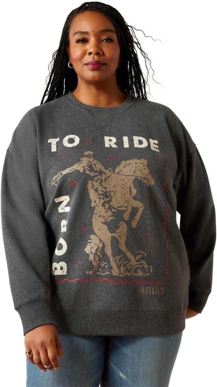 ARIAT Women’s Oversized Crew Sweatshirt(Heather Charcoal)