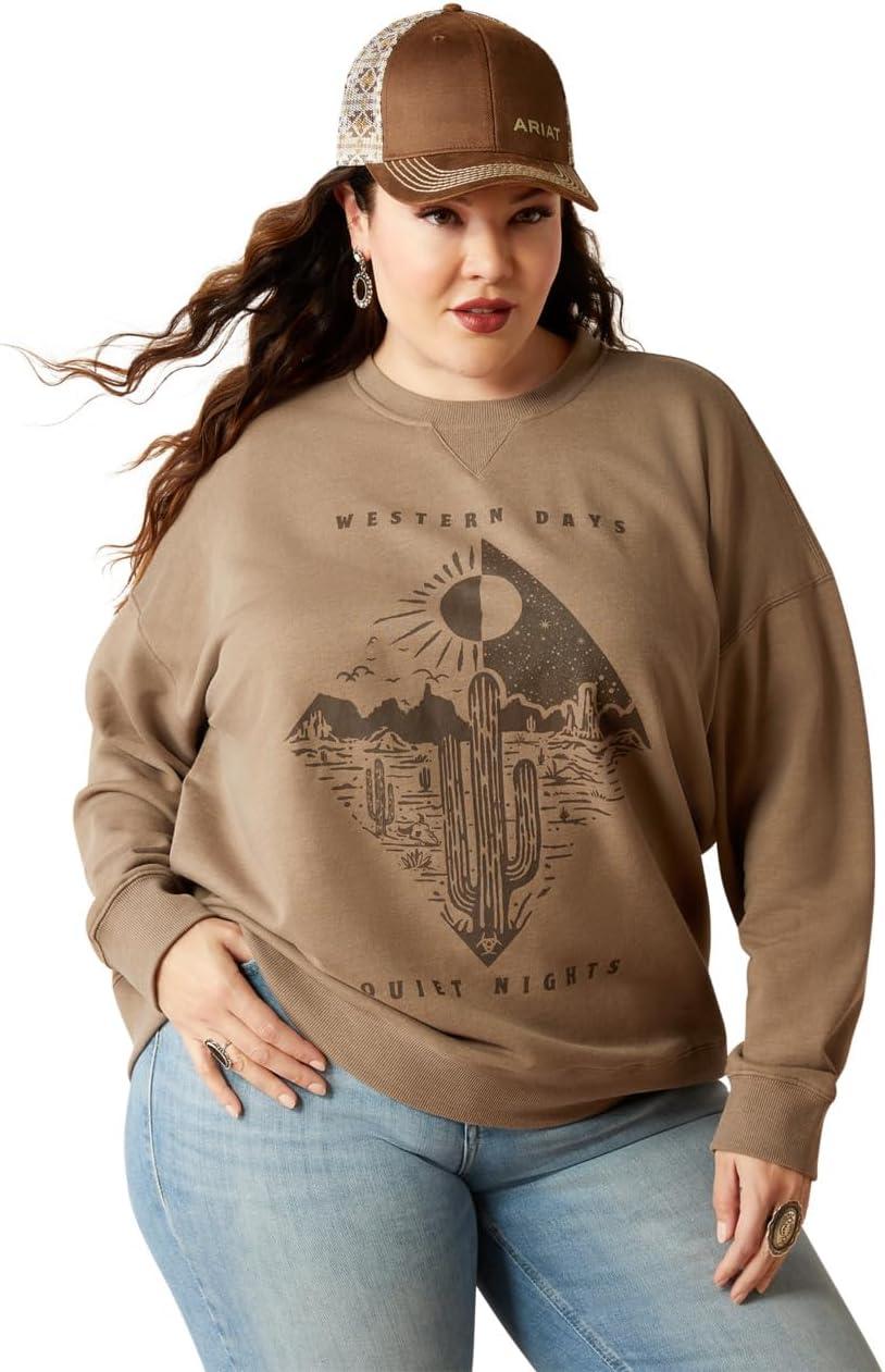 ARIAT Women’s Oversized Crew Sweatshirt(Banyan Bark)