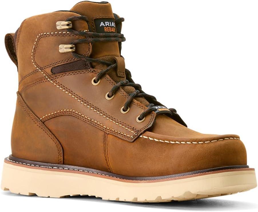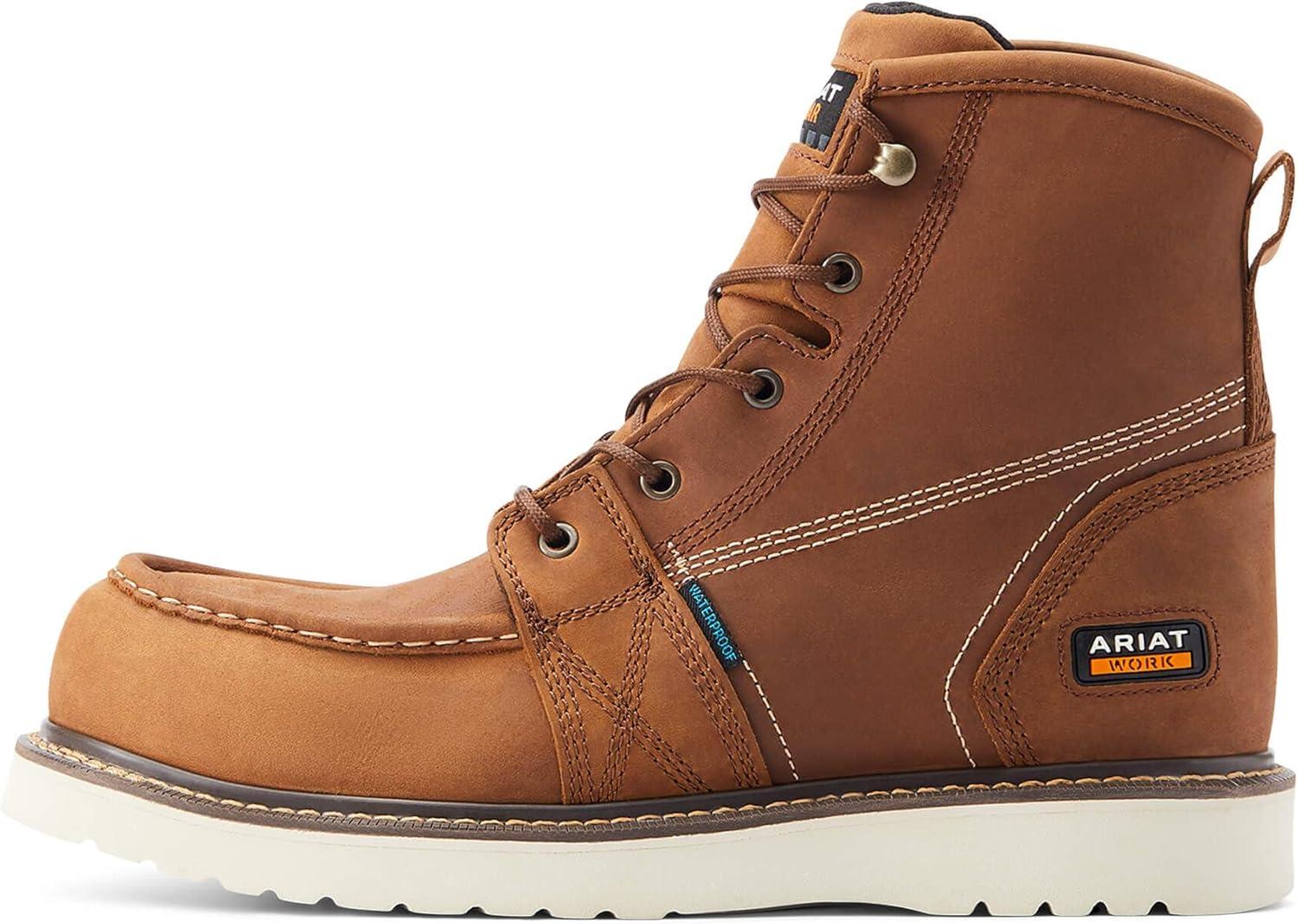 ARIAT Men’s Rebar Wedge Moc 6″ Waterproof Composite Toe Work Boot Western(Distressed Brown)