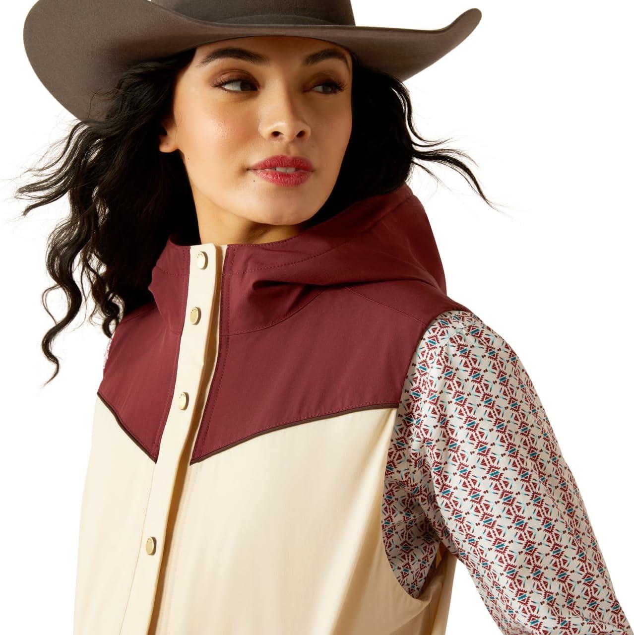 ARIAT Women Pioneer Stretchshell Vest(Summer Sand/Rosewood)