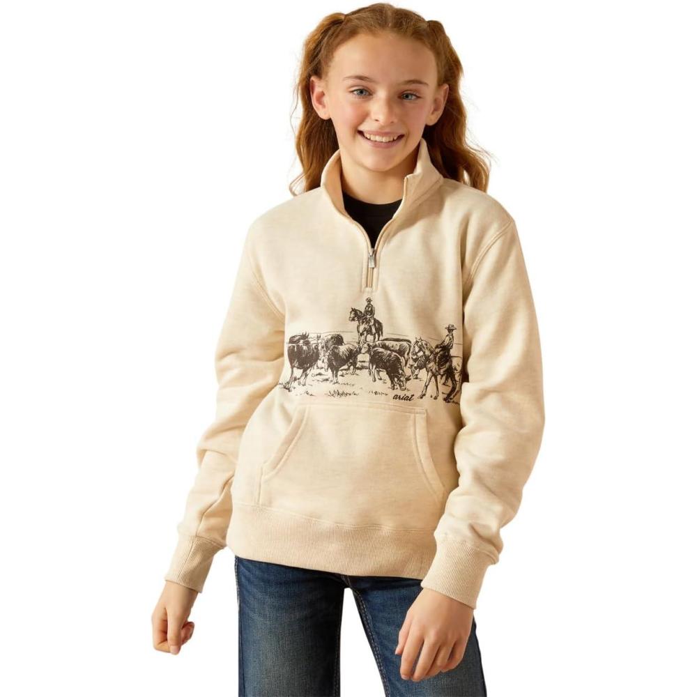 ARIAT girls Pasture 1/4 Zip Sweatshirt(Oatmeal Heather)