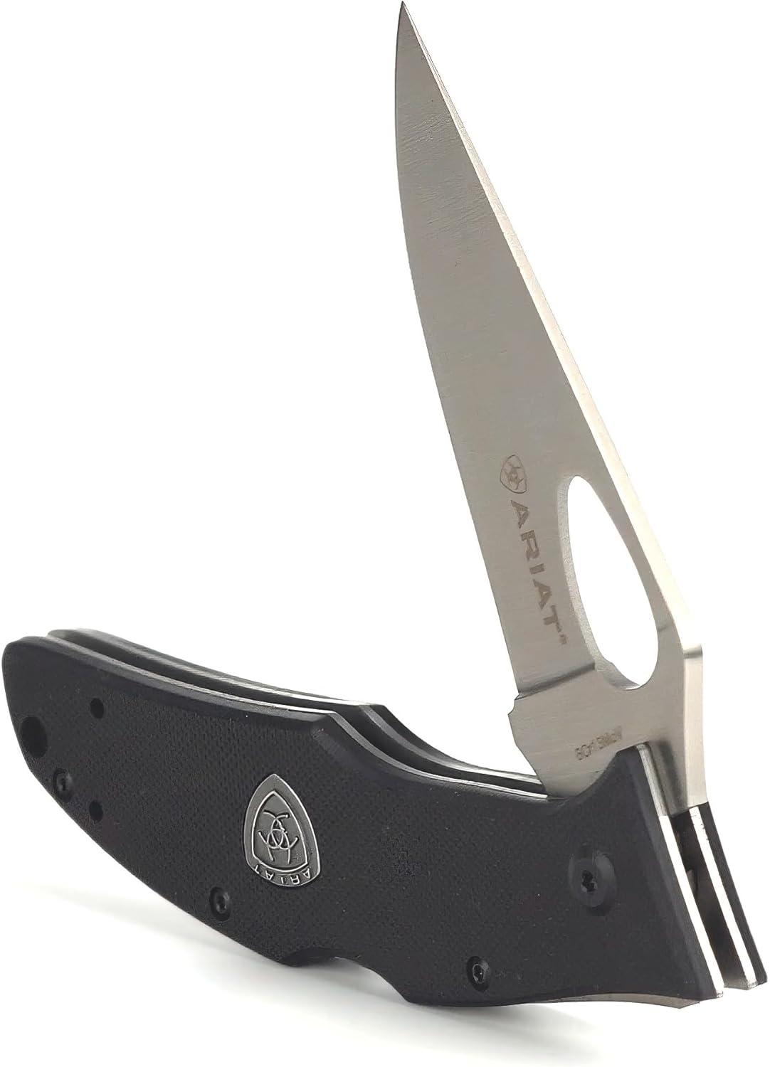 ARIAT Inset Shield Logo Plain Edge Blade Folding Knife, Black, 3.5″ Blade (Large)(Black)