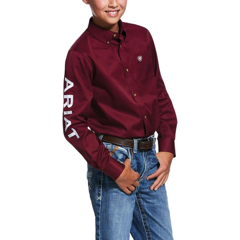 ARIAT Kid’s Team Logo Twill Classic Fit Shirt(Burgundy/White)