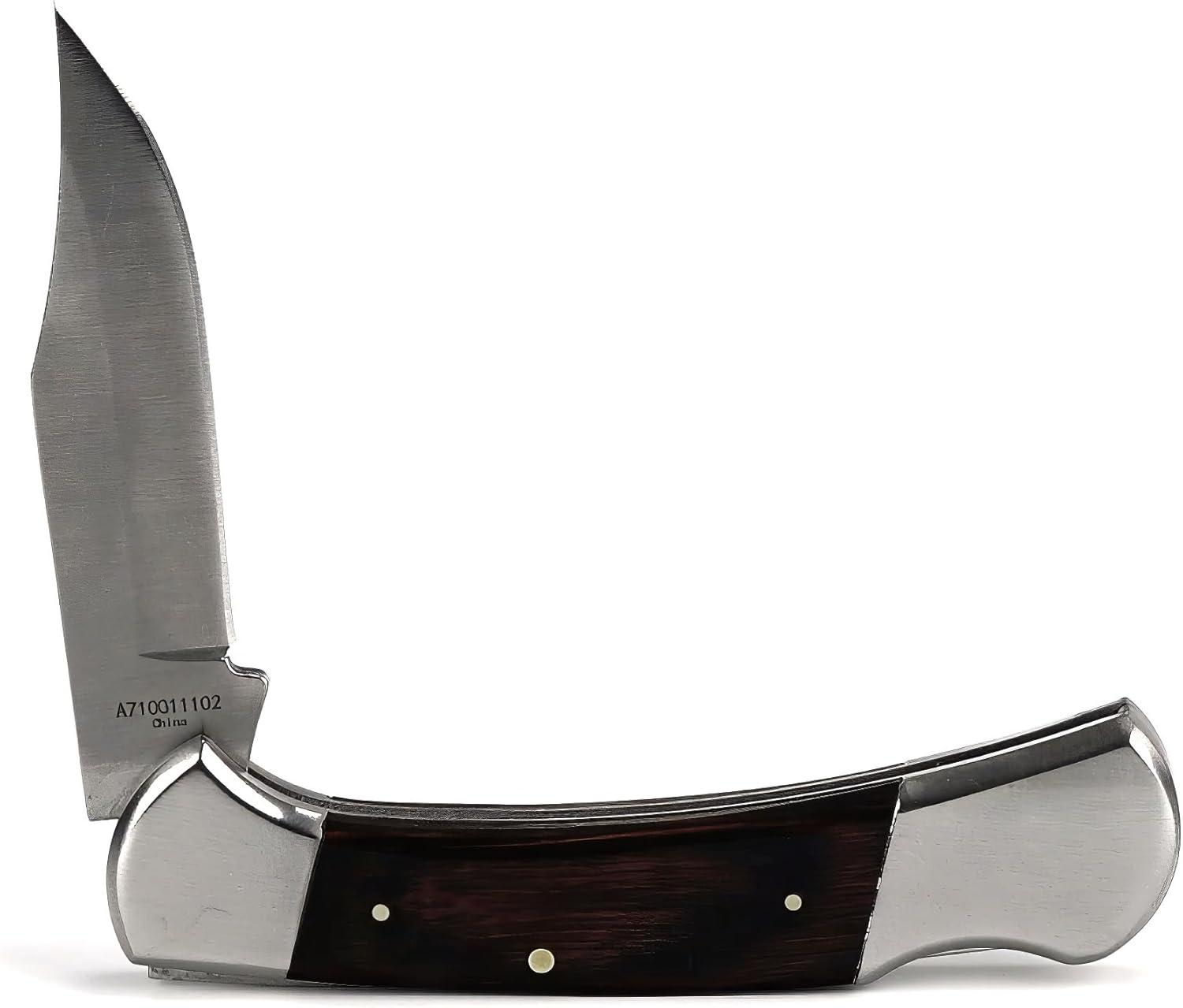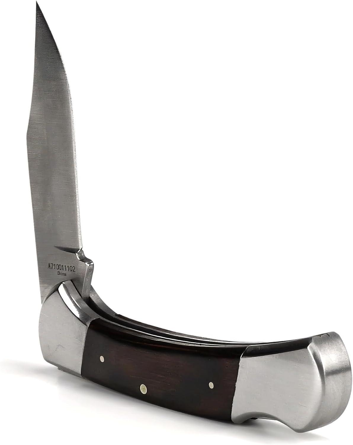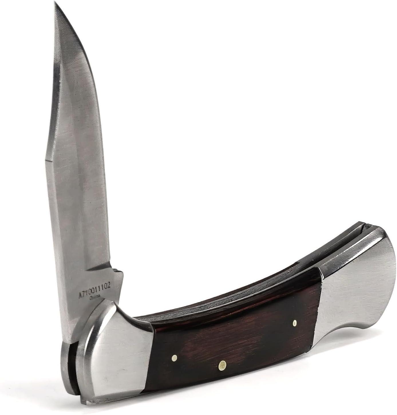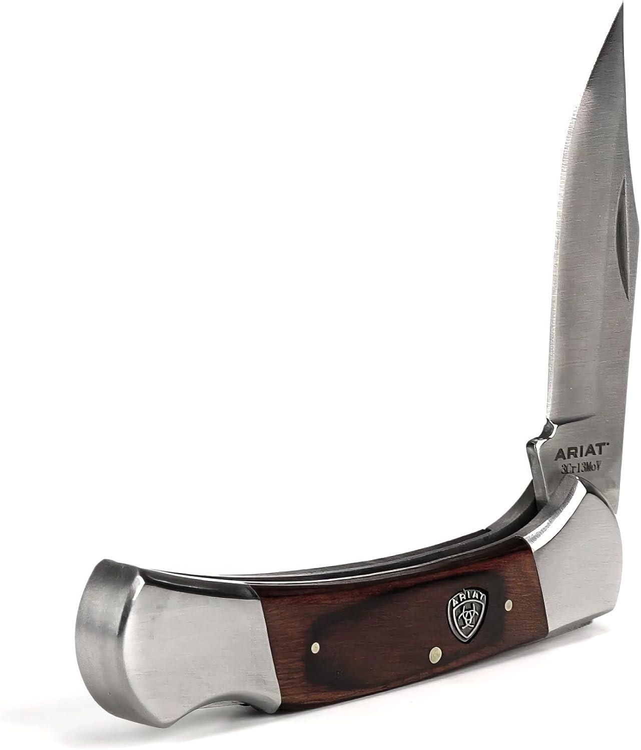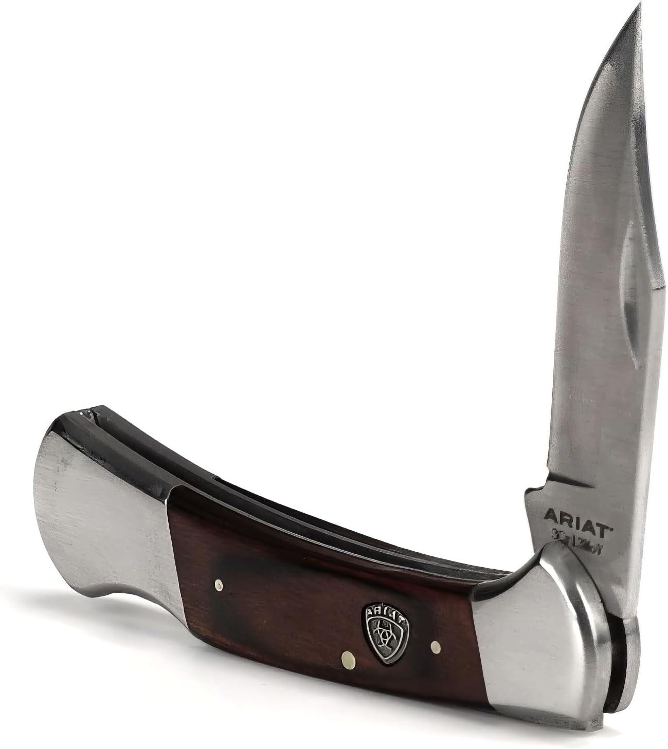 ARIAT Large Folding Knife – 3-3/8″ Smooth 3CR13 Steel Blade with Back Lock and Brown Wood Handle