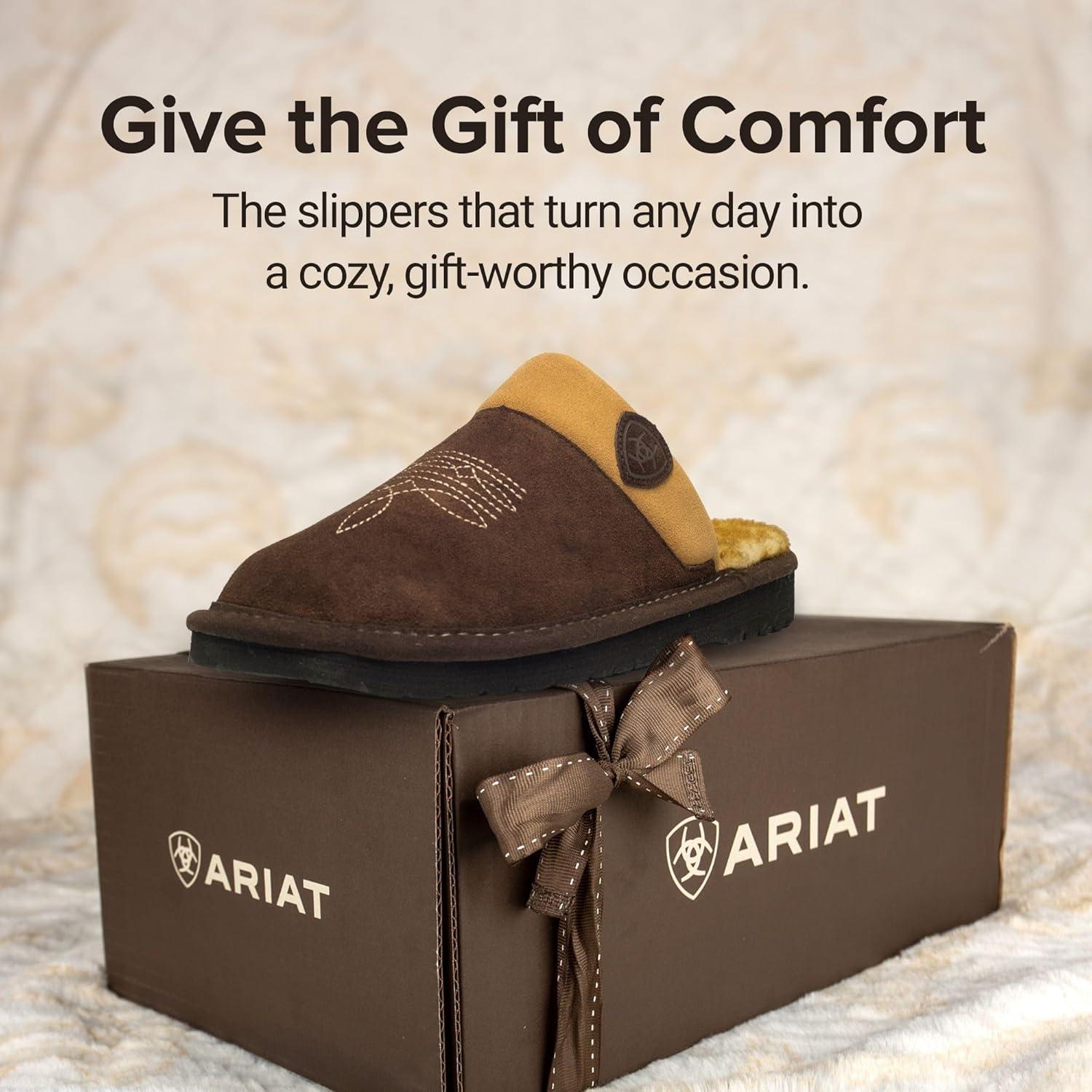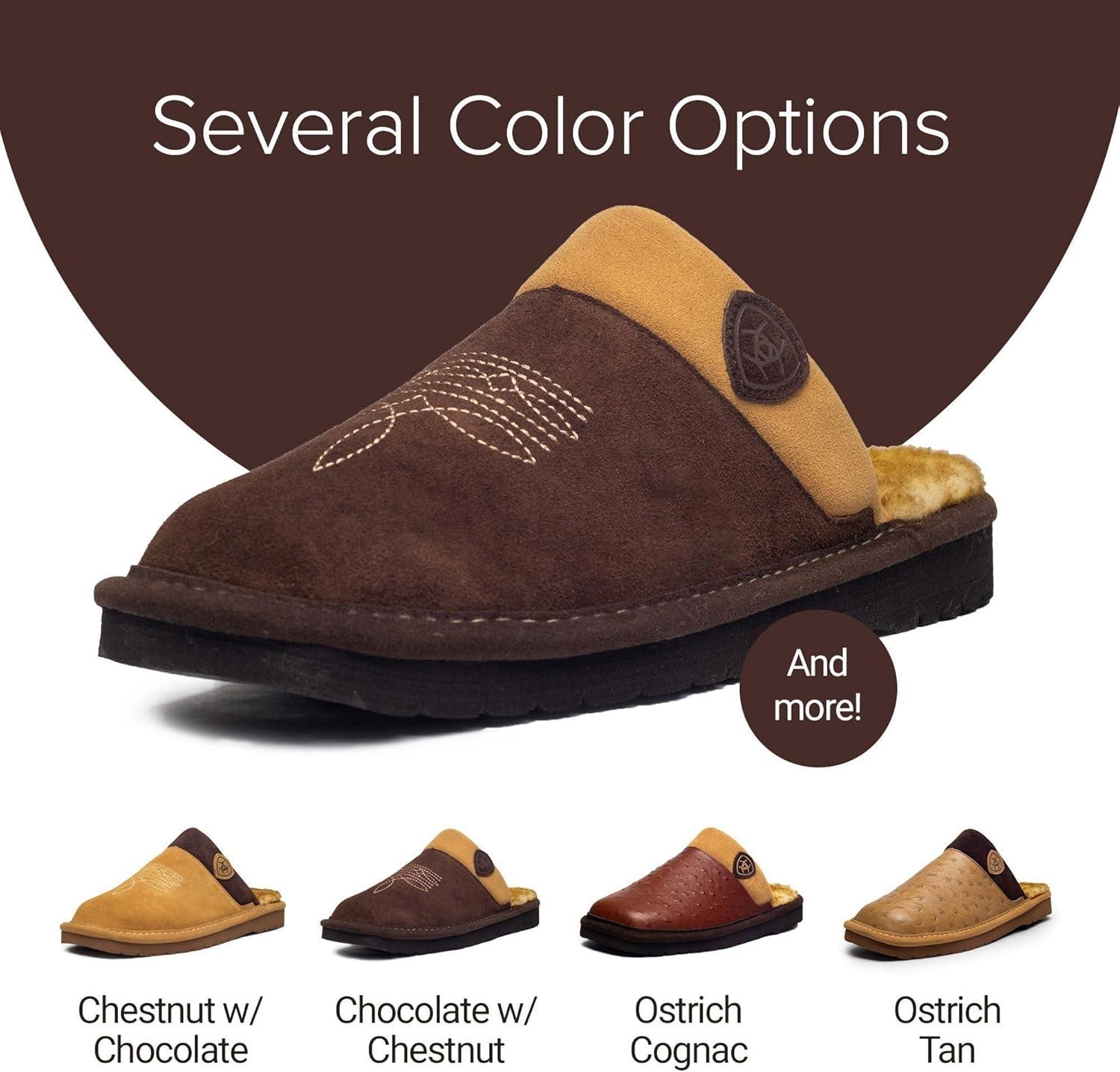 ARIAT Men’s 2842 Silversmith Outdoor Indoor Western Suede Foam Cushioned Square Toe Slipper(Chocolate/Chestnut)