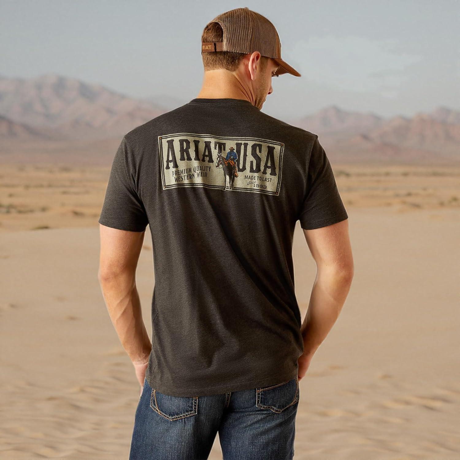ARIAT Men’s Buckaroo T-Shirt, Buckhorn(Charcoal Heather/Rider Label)
