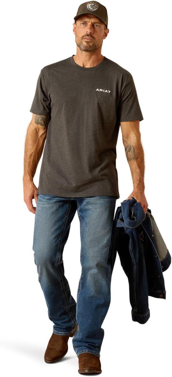 ARIAT Men’s Buckaroo T-Shirt, Buckhorn(Charcoal Heather/Roundabout)
