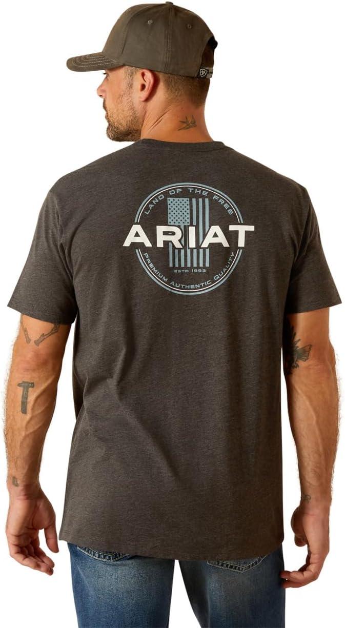 Ariat’s men’s graphic tees are created with a high quality blend of cotton and polyester that create a soft, comfortable tee that is perfect for the barn, work or town. They feature moisture wicking technology to help pull moisture from the skin keeping you dry and comfortable. These tees come in many designs that are sure to fit any person’s style. Ariat is a leader in developing advanced technologies to deliver products that outperform in a variety of demanding environments. The brand partners with world-class biomechanical research groups and testing labs to improve product performance, comfort, and durability – while focusing on real-world product functionality. Ariat works with global suppliers to develop new materials that are lighter, cooler, and more durable than anything in the market. The brand field-tests all of its products to consistently raise the bar for functionality and style. Here at Ariat, we are committed to delivering performance footwear and clothing with an emphasis on technology and innovation. Today, Ariat’s world-class product team builds innovative and award-winning performance products for all types of outdoor and work environments.
