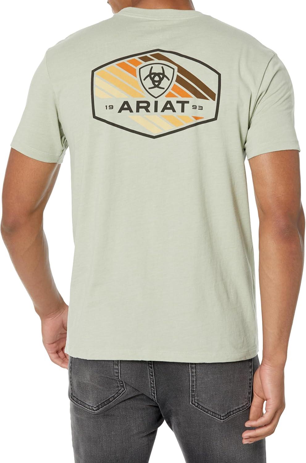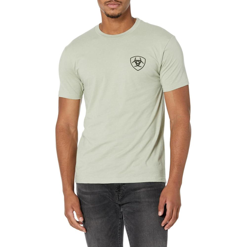 ARIAT Men’s Buckaroo T-Shirt, Buckhorn(Desert Sage Heather/Retro Hex Stripe)