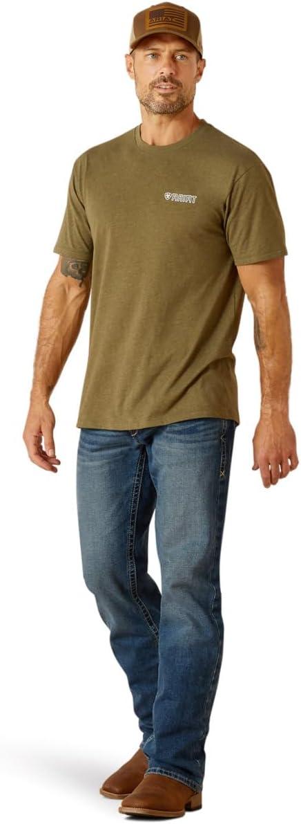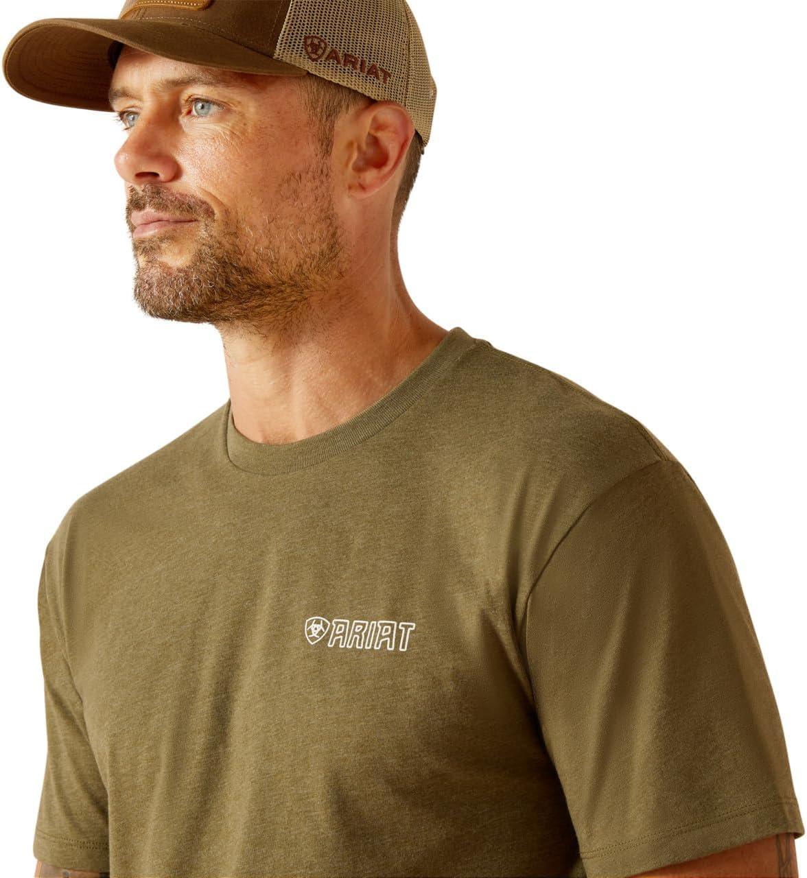 ARIAT Men’s Buckaroo T-Shirt, Buckhorn(Military Heather/Outline Wing)