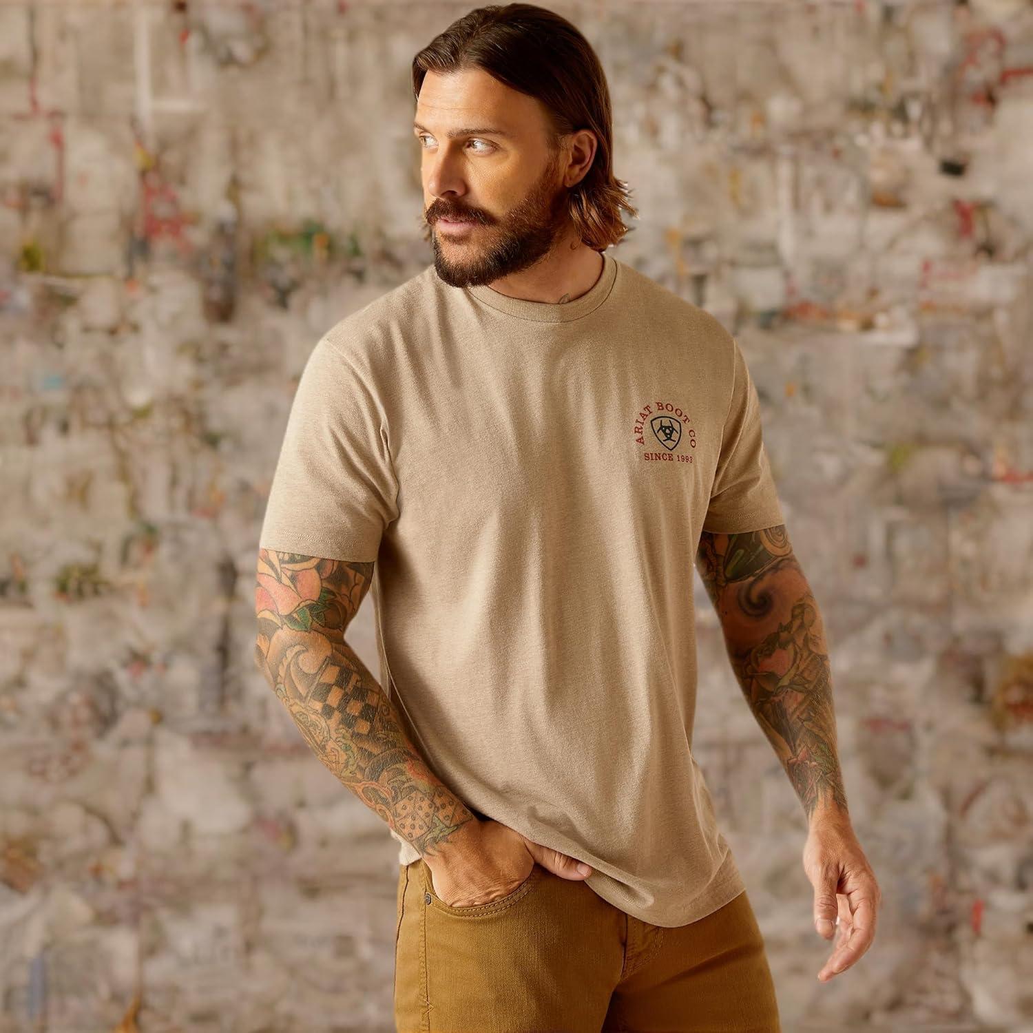ARIAT Men’s Buckaroo T-Shirt, Buckhorn(Oatmeal Heather/Flying Eagle)