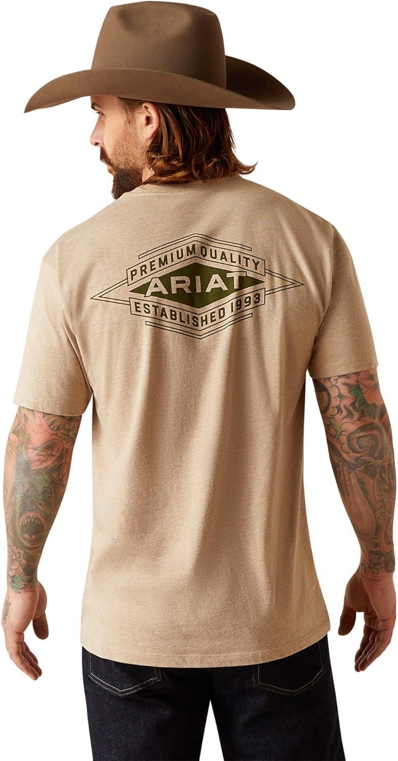 ARIAT Men’s Buckaroo T-Shirt, Buckhorn(Oatmeal Heather/Work Diamond)