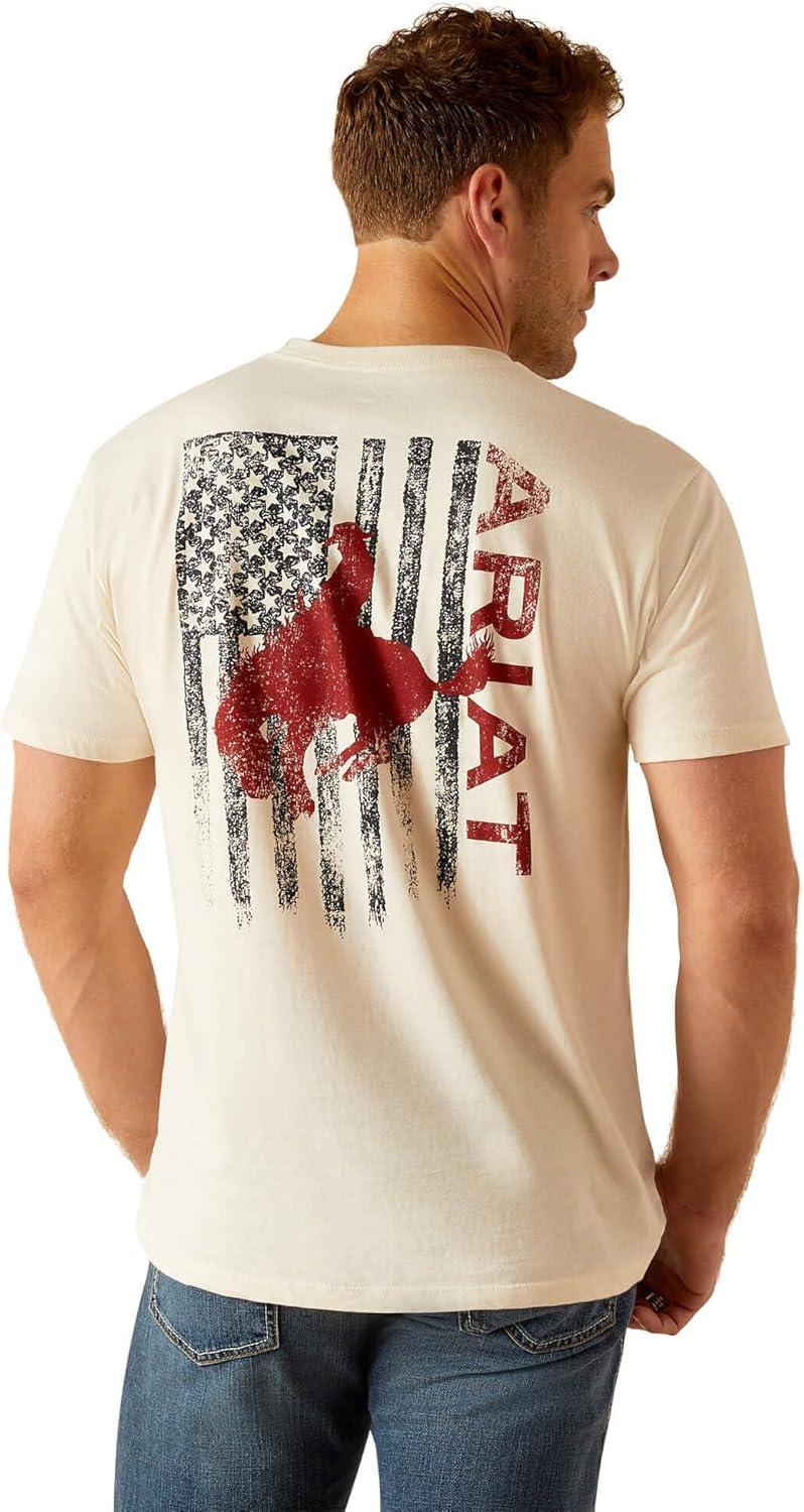 ARIAT Men’s Buckaroo T-Shirt, Buckhorn(Off White/Bronco Flag)
